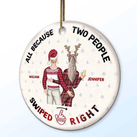 Christmas Swiped Right - Gift For Couples - Personalized Custom Circle Ceramic Ornament
