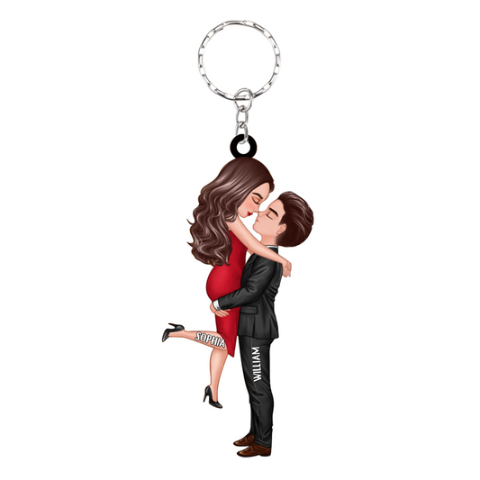 Personalized Keychain - Gift For Couple - Doll Couple Kissing Hugging Personalized Keychain