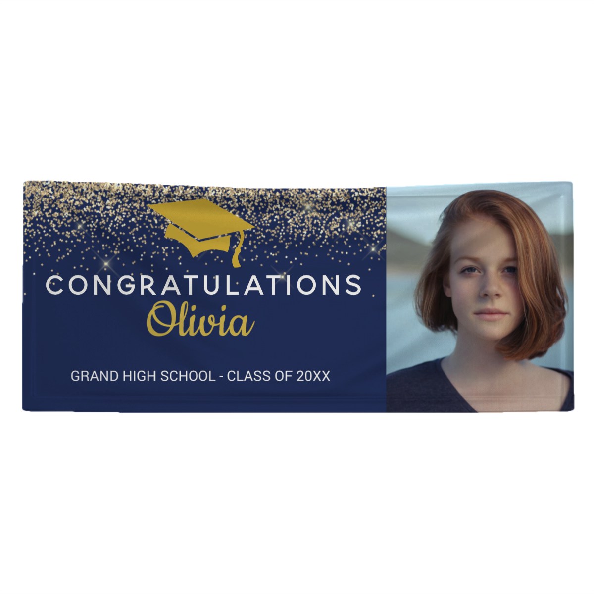 Personalized Name/Photo, 2022 Graduation Glitter Navy Blue Gold Banner