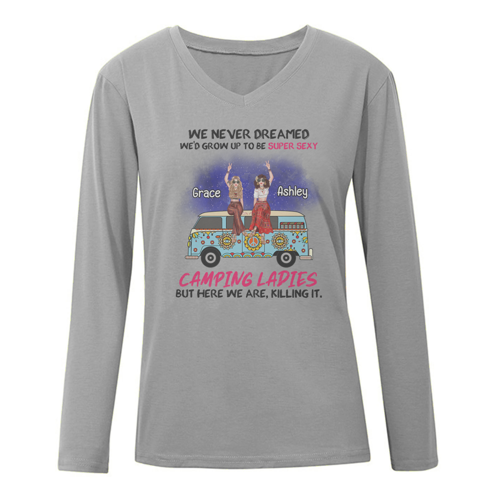 A Super Sexy Camping Lady Hippie Personalized Woman Long Sleeve Shirt