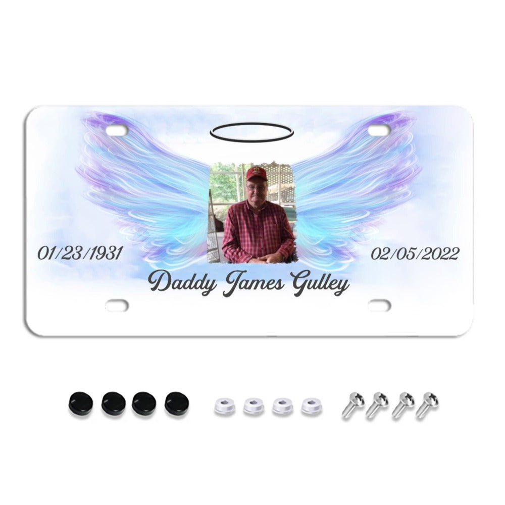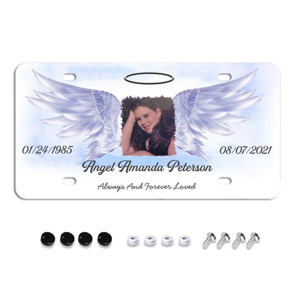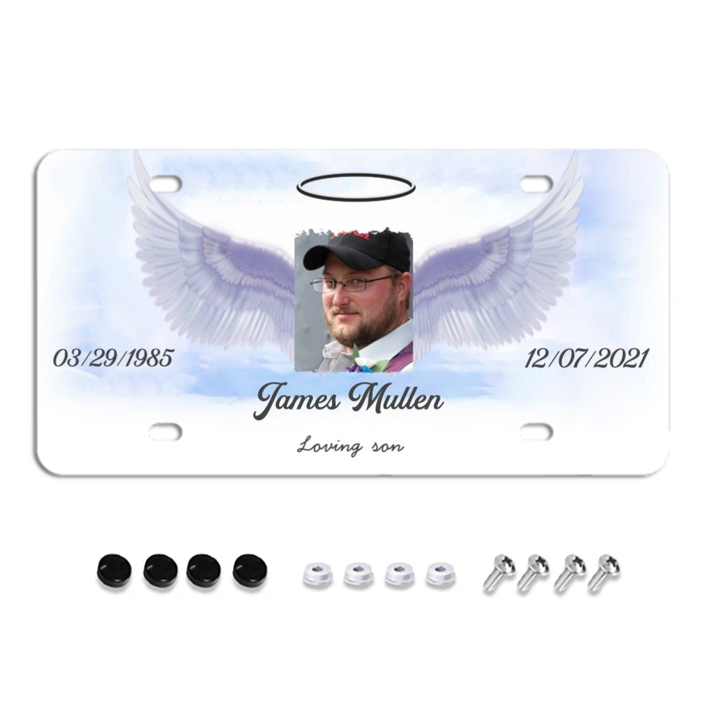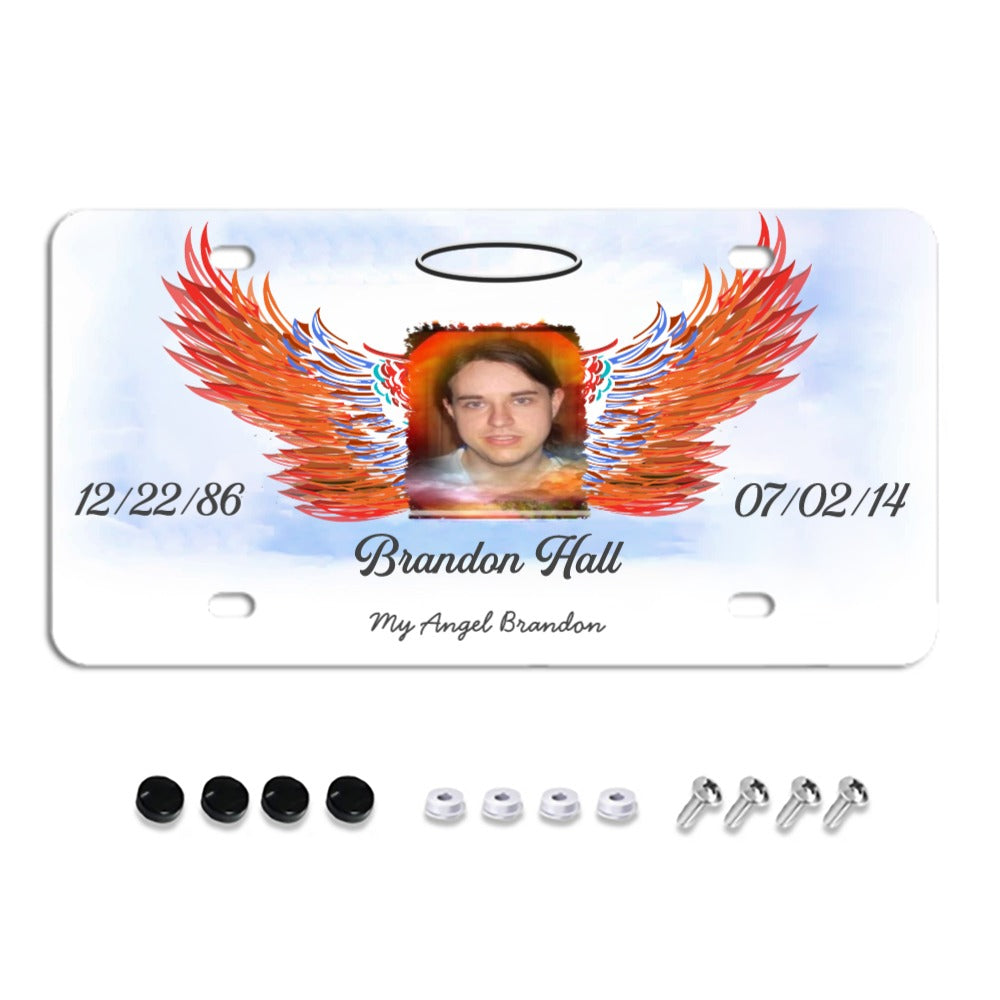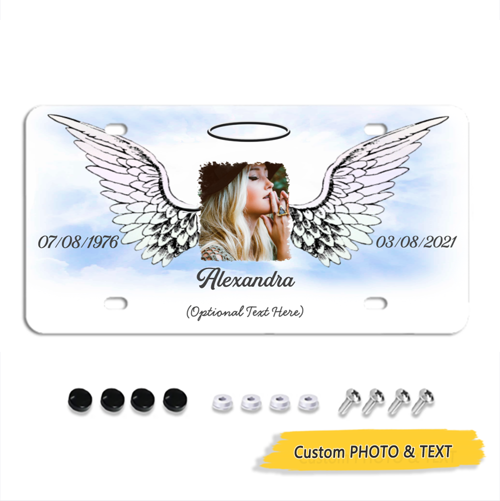Unique Custom License Plate, Personalized Photo & Texts Angle Wing Memorial Decorative Front License Plate