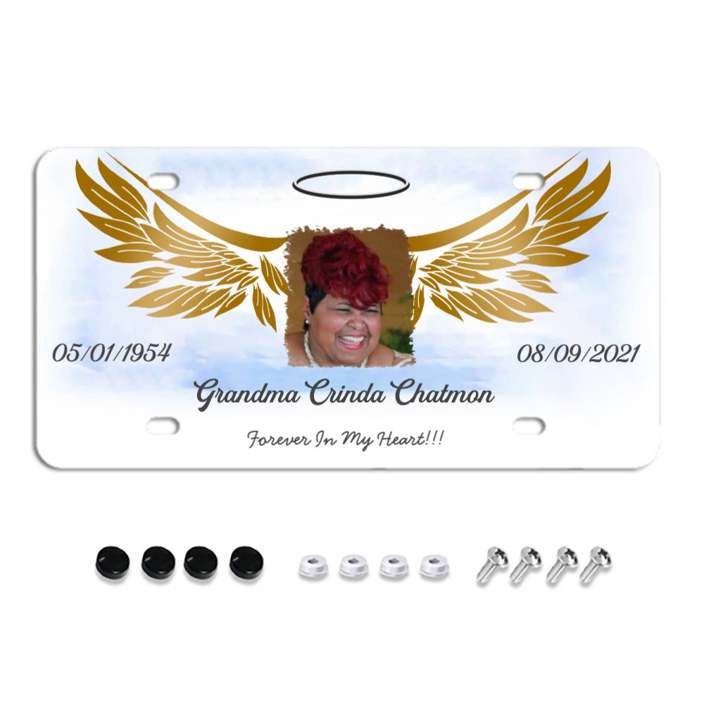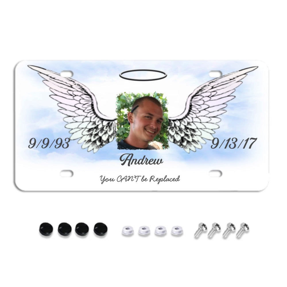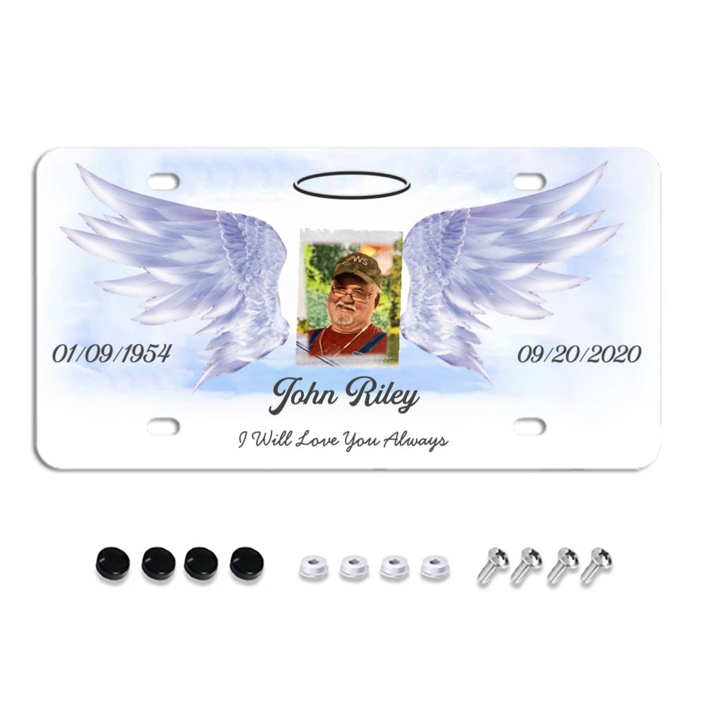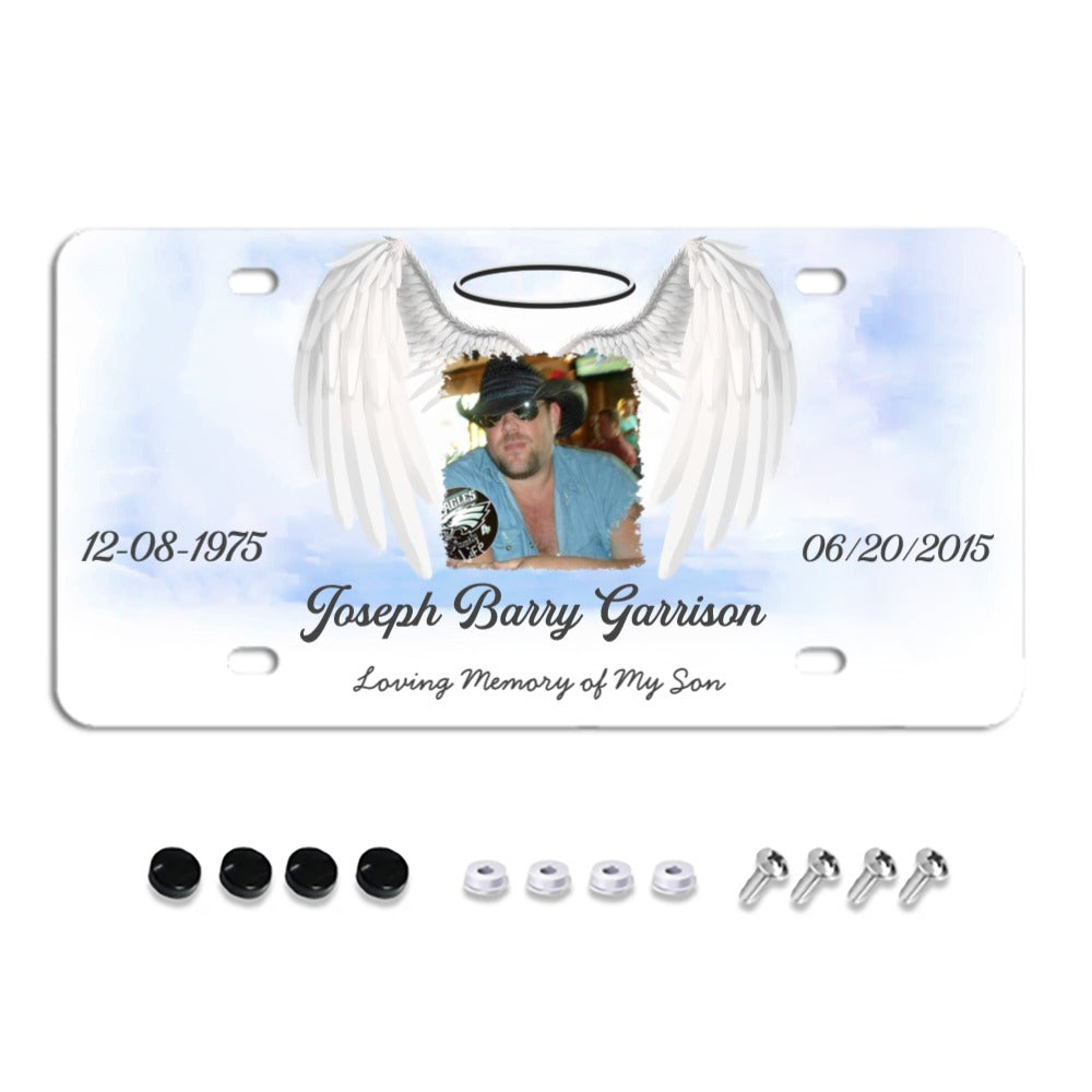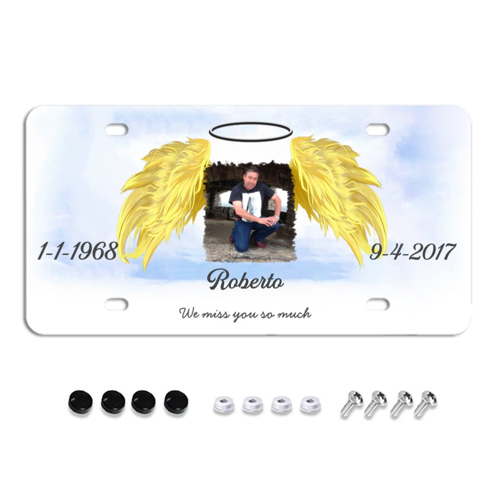 Unique Custom License Plate, Personalized Photo & Texts Angle Wing Memorial Decorative Front License Plate