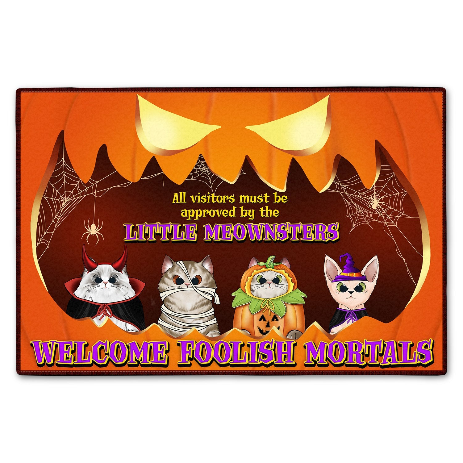 All Visitors Must Be Approved By The Little Meownsters Welcome Foolish Mortals - Halloween Home Decor Gift For Cat Lovers - Personalized Doormat