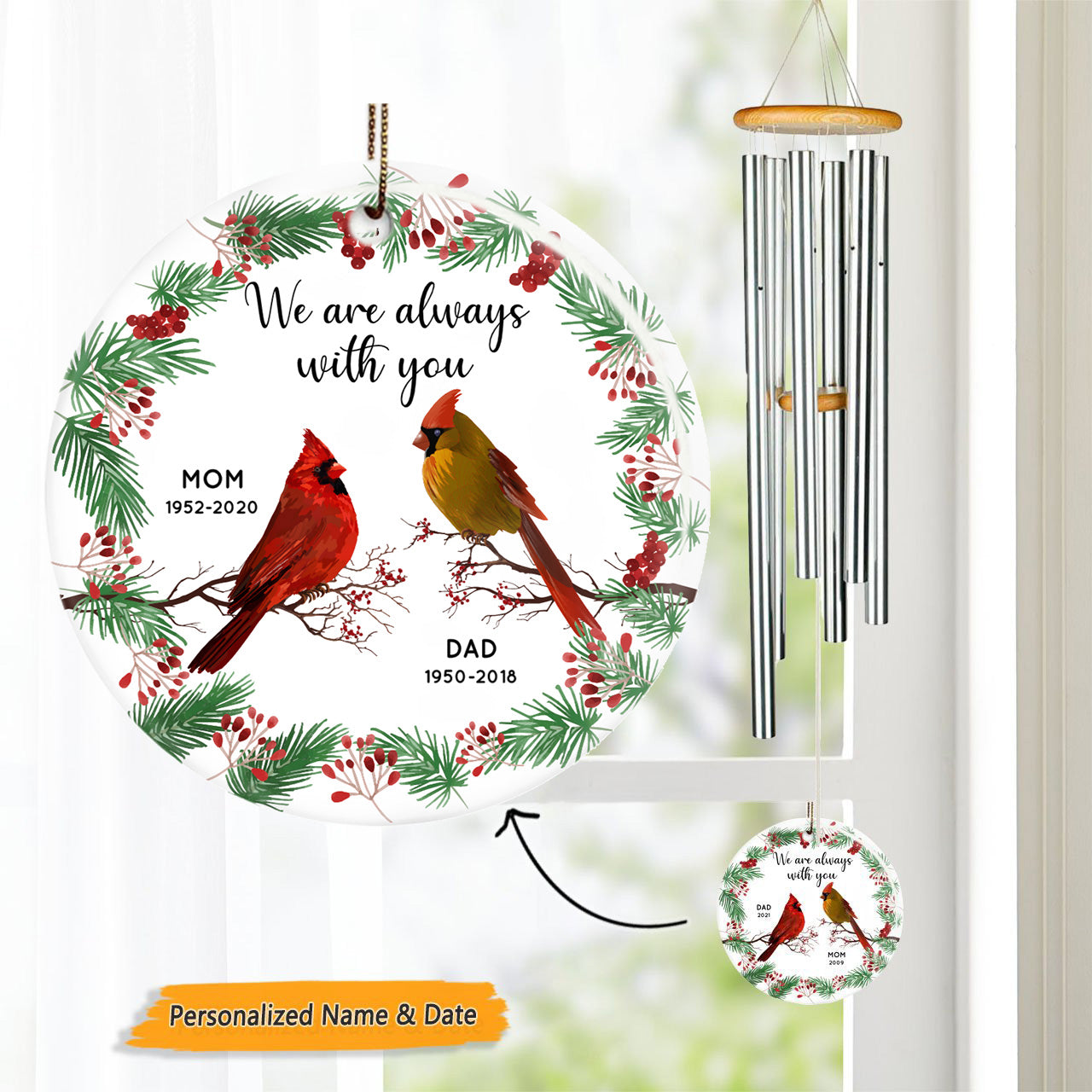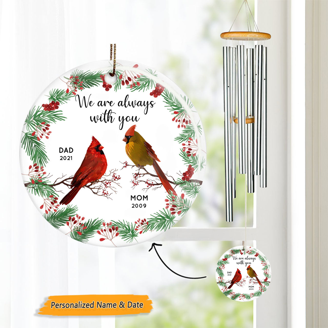 Always With You Holly Branch Christmas Personalized Memorial Circle Wind Chime