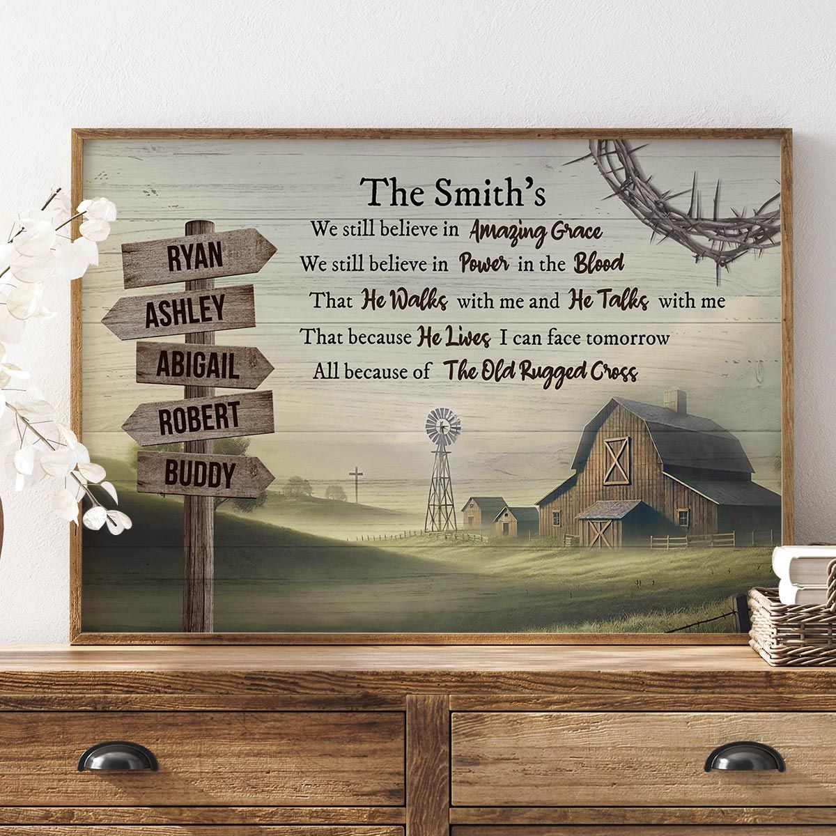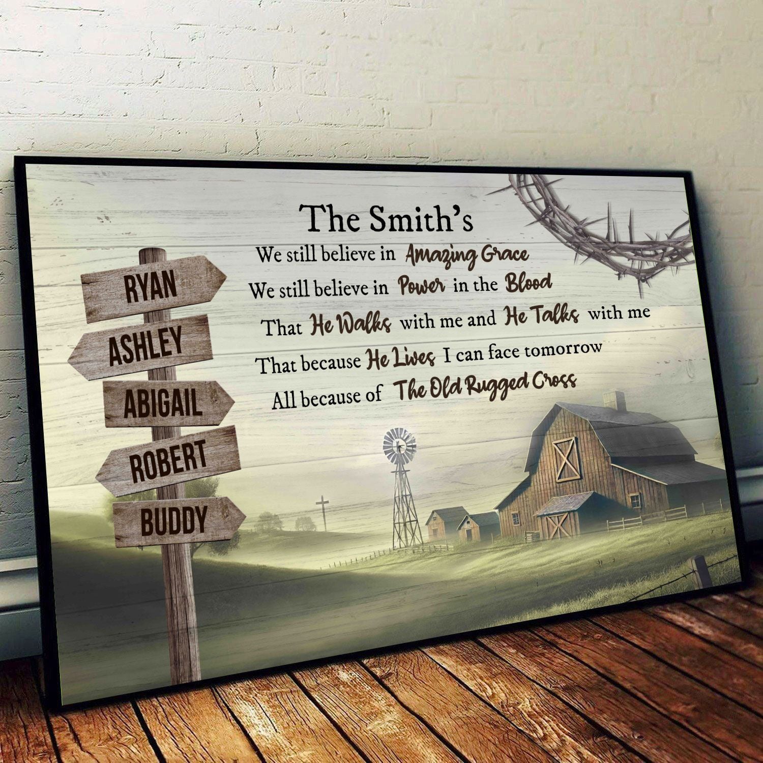 Amazing Grace Farmhouse Wooden Road Sign Premium Canvas, Perfect Family Personalized House, Kitchen, Living Room Decoration