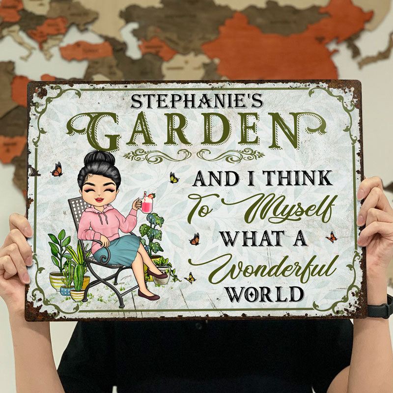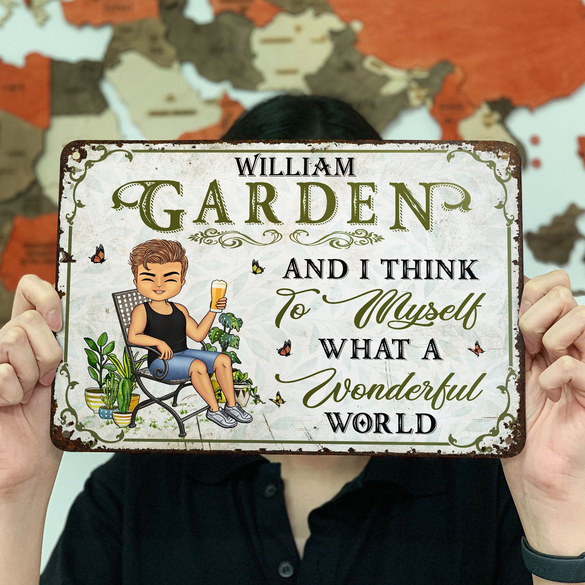 And I Think To Myself What A Wonderful World Gardening - Garden Sign - Personalized Custom Classic Metal Signs