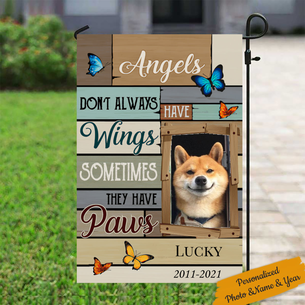 Angel Have Paws Pet Memorial Photo Personalized Garden Flag