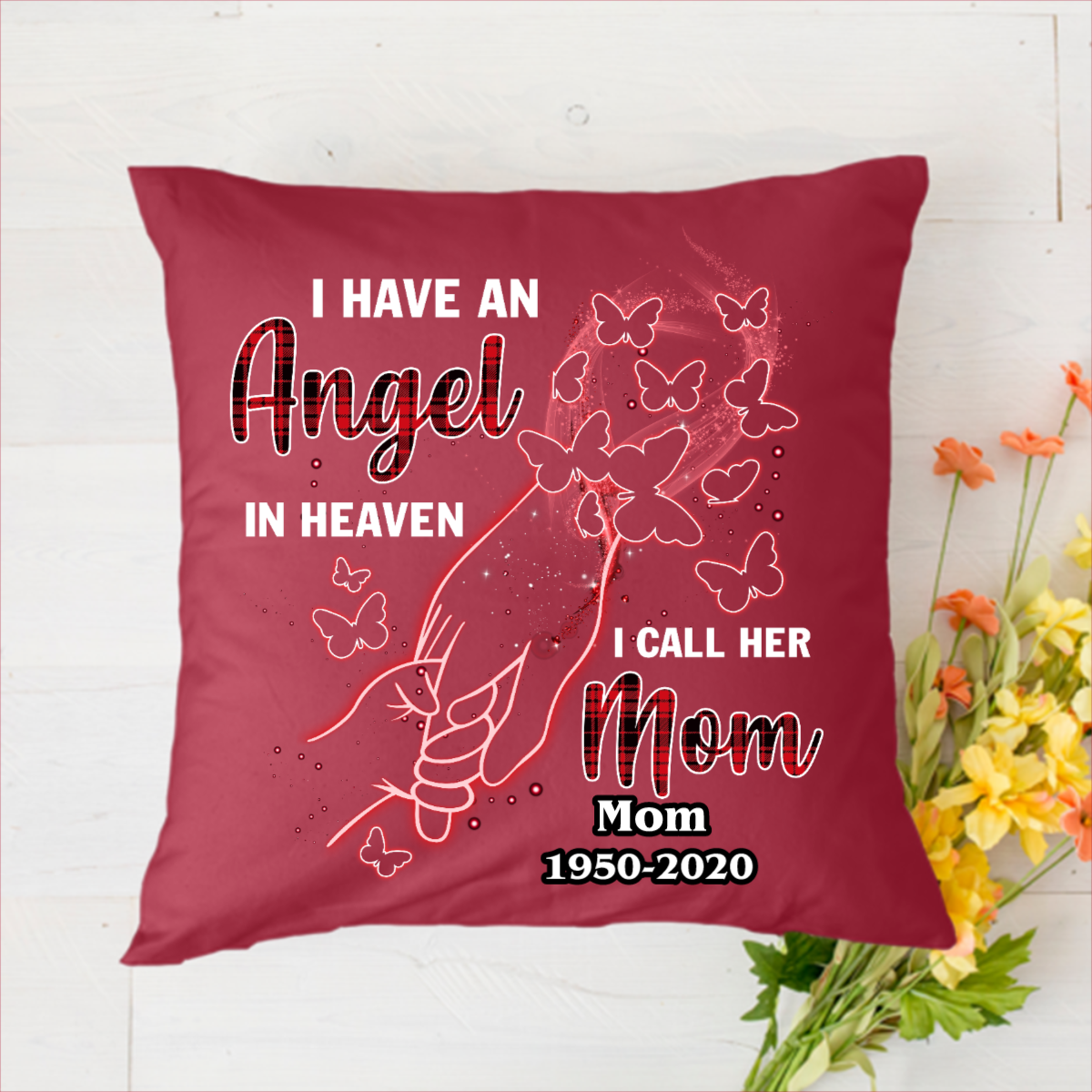 Angel Mom Memorial Personalized Name & Year Polyester Linen Pillow