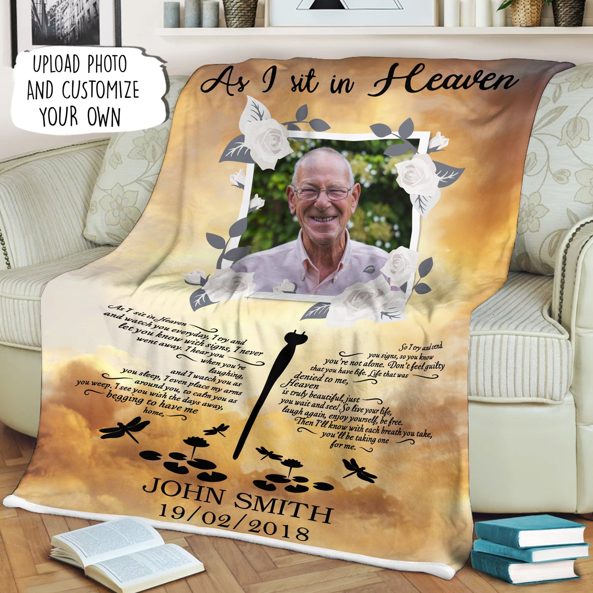 As I Sit In The Heaven Personalized Memorial Blanket For Family Members With Your Own Photo