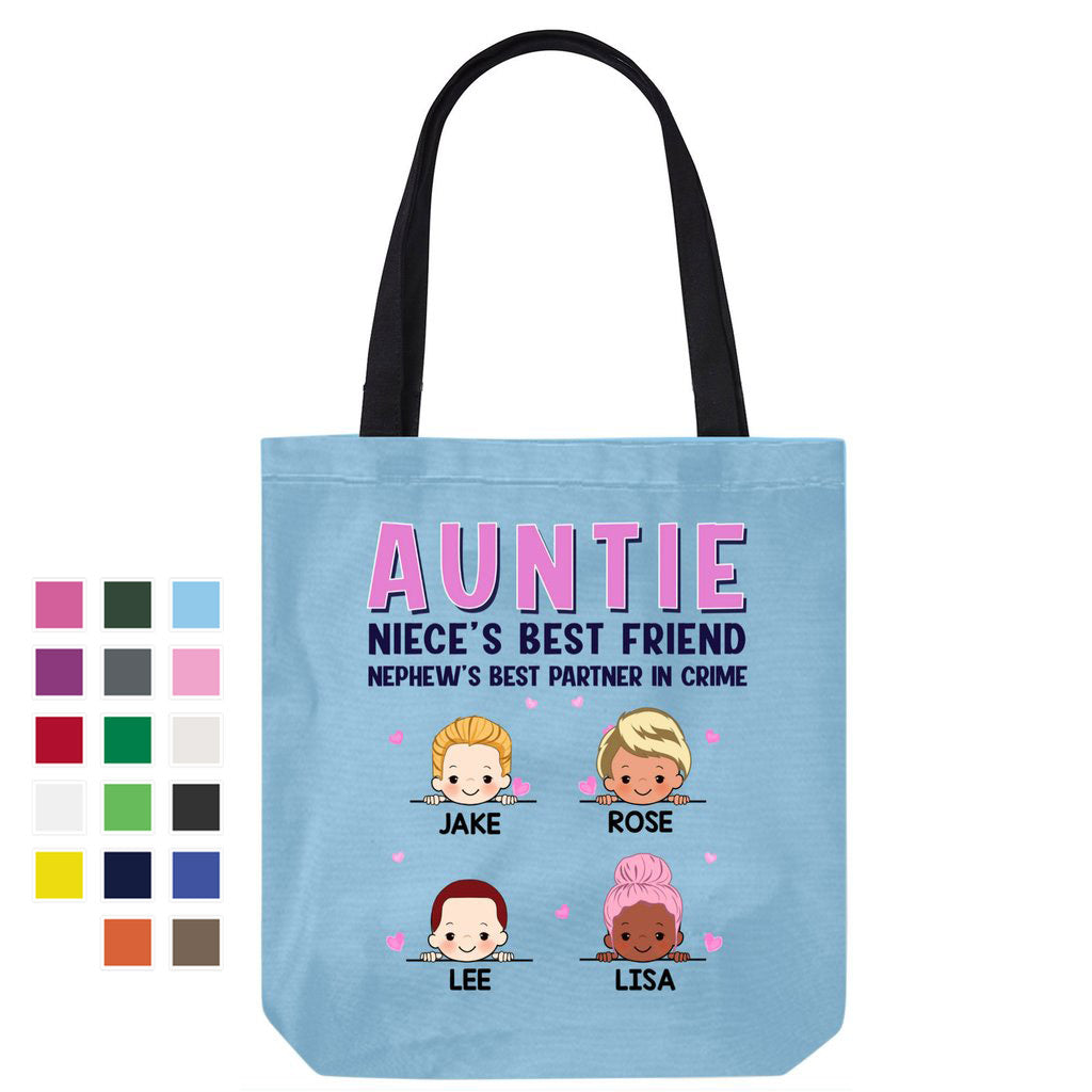Aunt Best Friend And Partner In Crime Pink Patterned Personalized Canvas Bag
