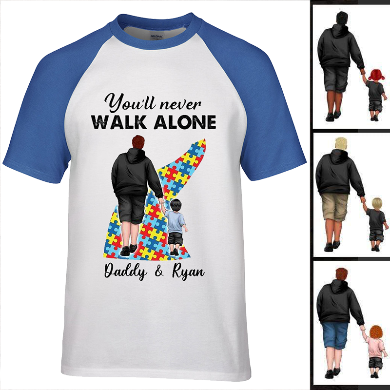 Autism Dad You‘ll Never Walk Alone Personalized Round Neck Baseball Tee