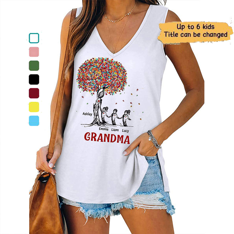 Autumn Tree Grandma And Kids Personalized Women Tank Top V Neck Casual Flowy Sleeveless