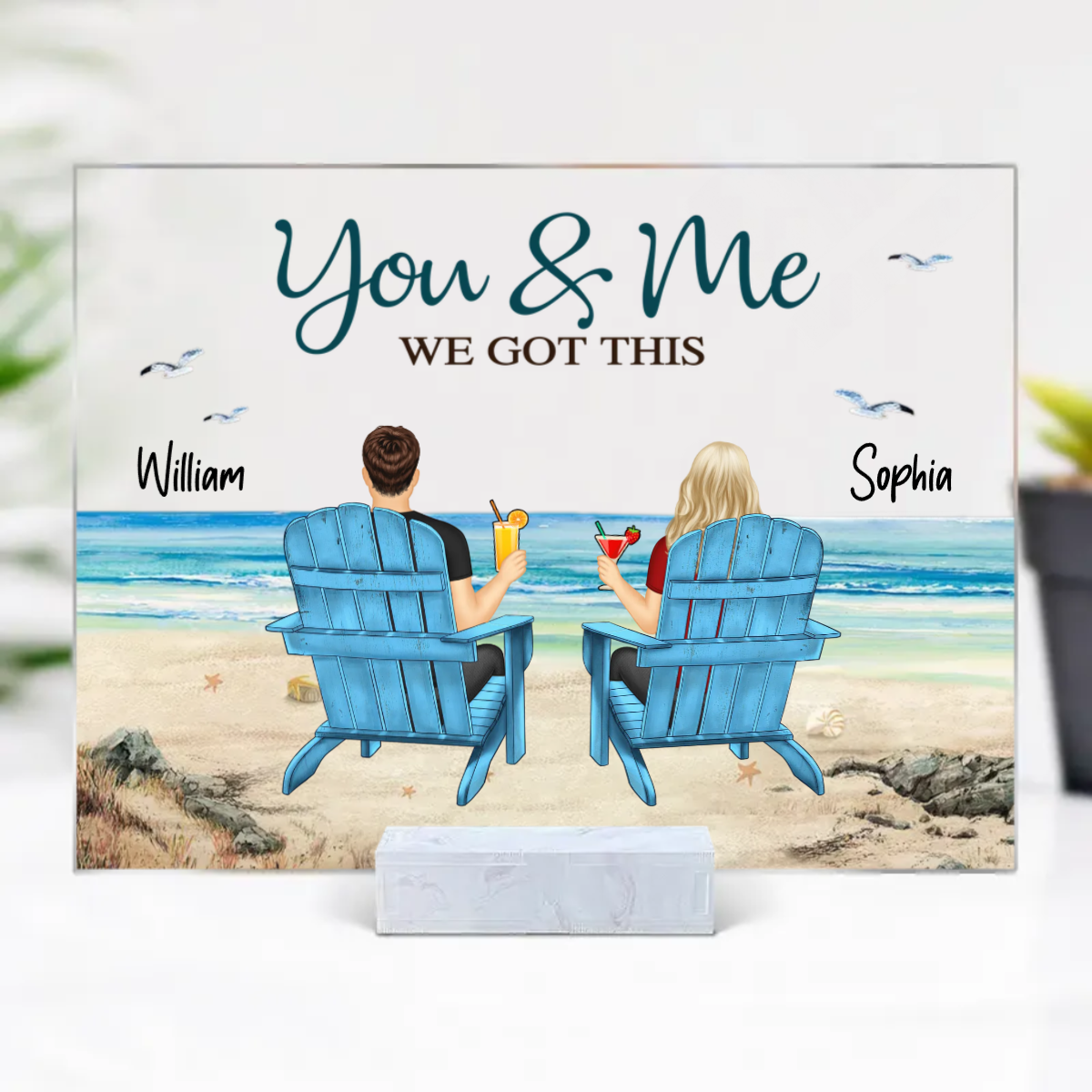 Back View Couple Sitting Beach Landscape Personalized Custom Acrylic Plaque