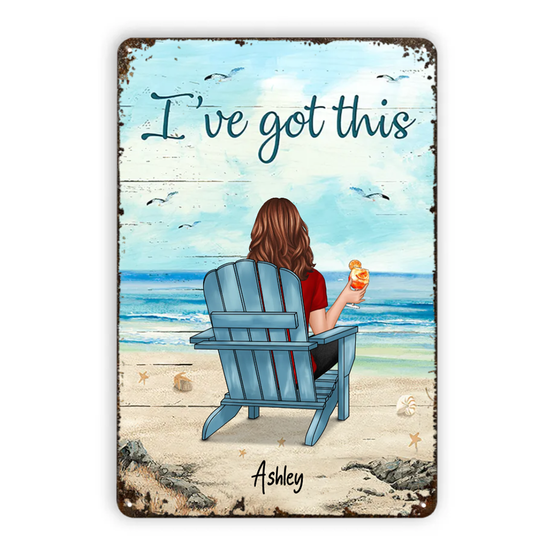 Back View Man Woman Sitting Beach Landscape Personalized Vertical Metal Signs