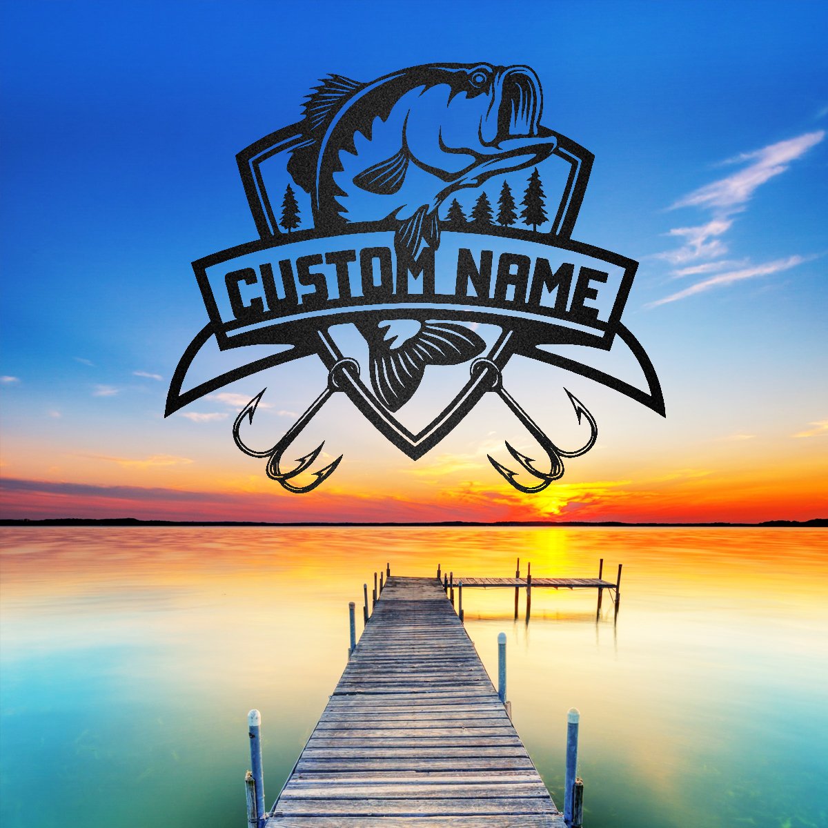 Bass Fish Logo Custom Name Trout Name Sign, Family Name Sign, Metal Monogram Sign