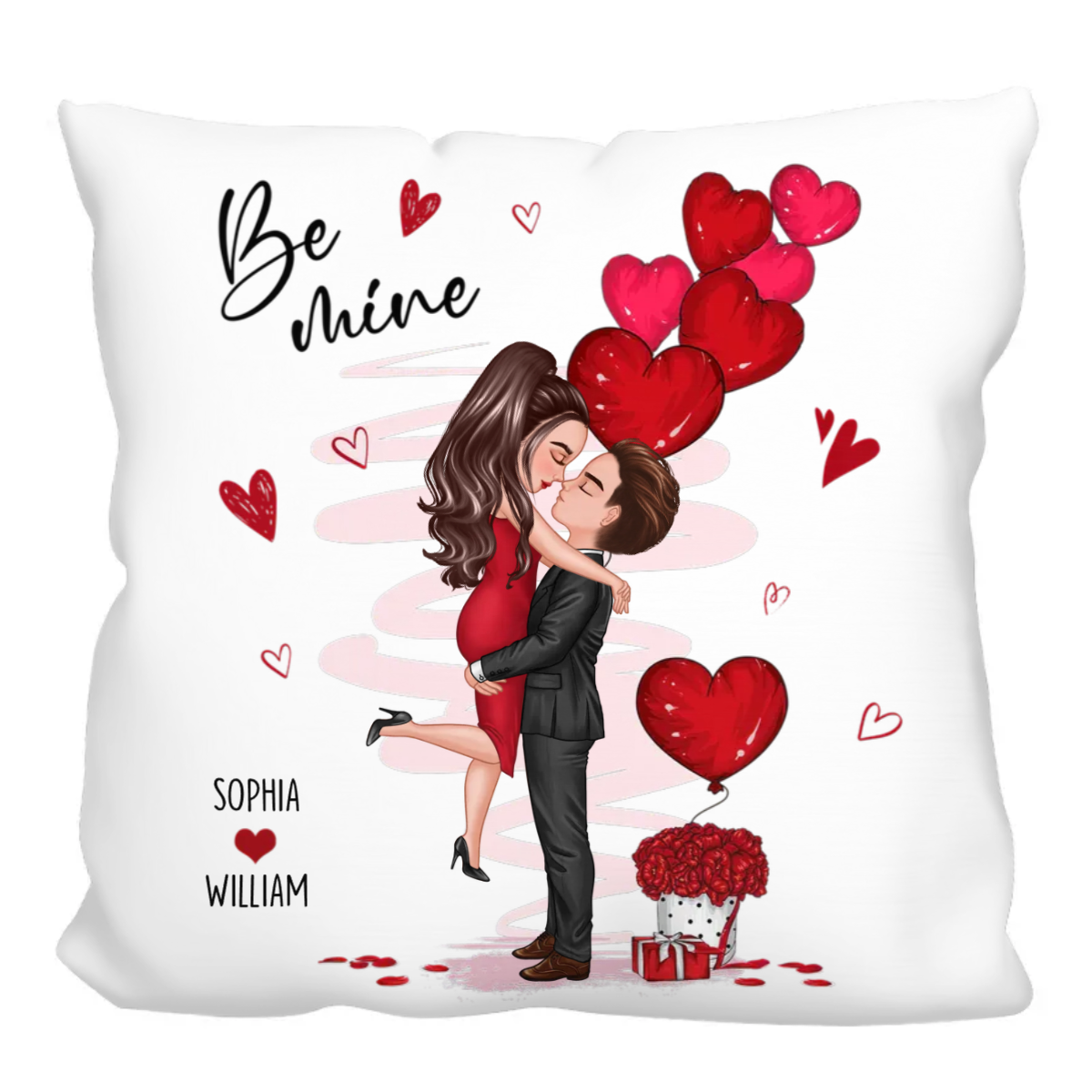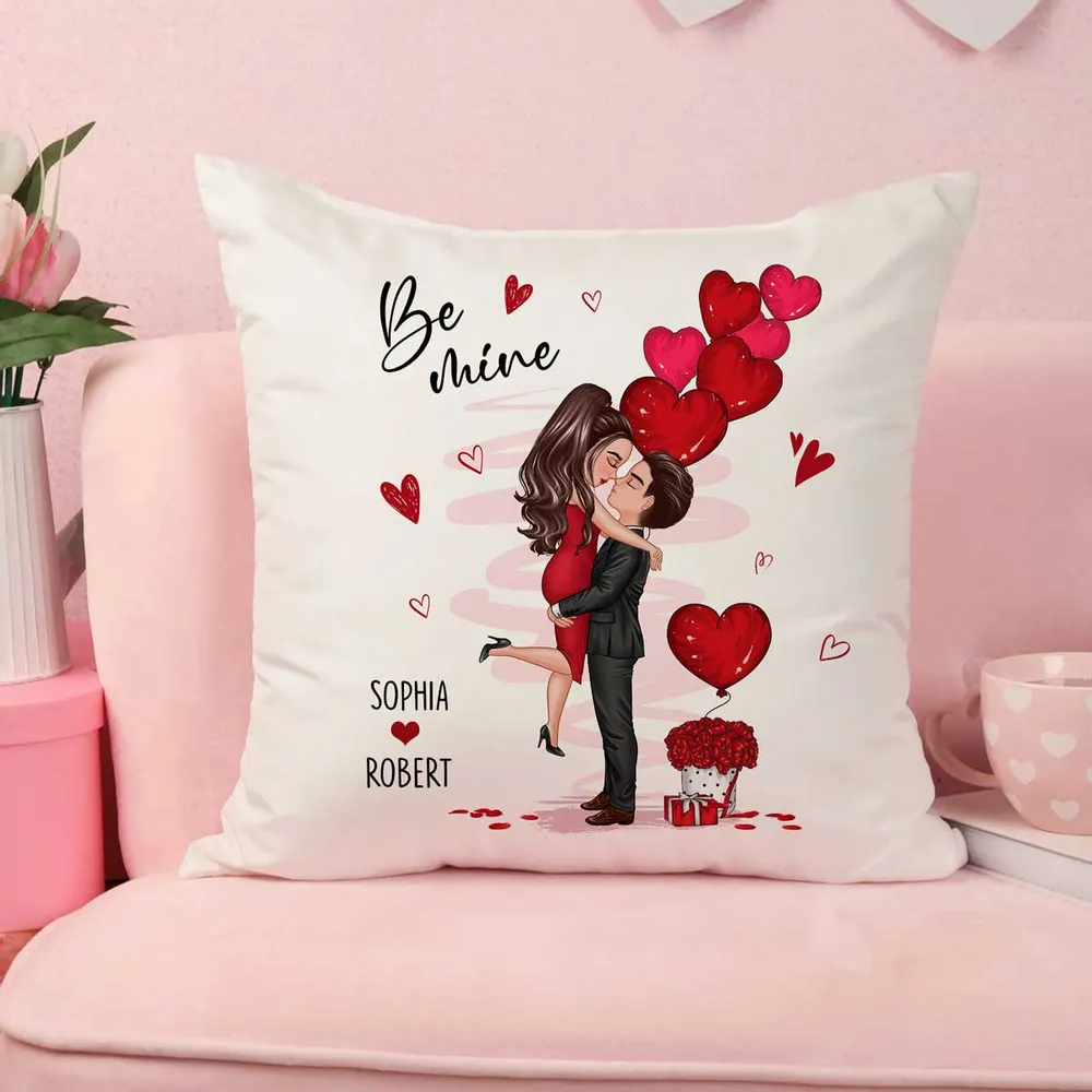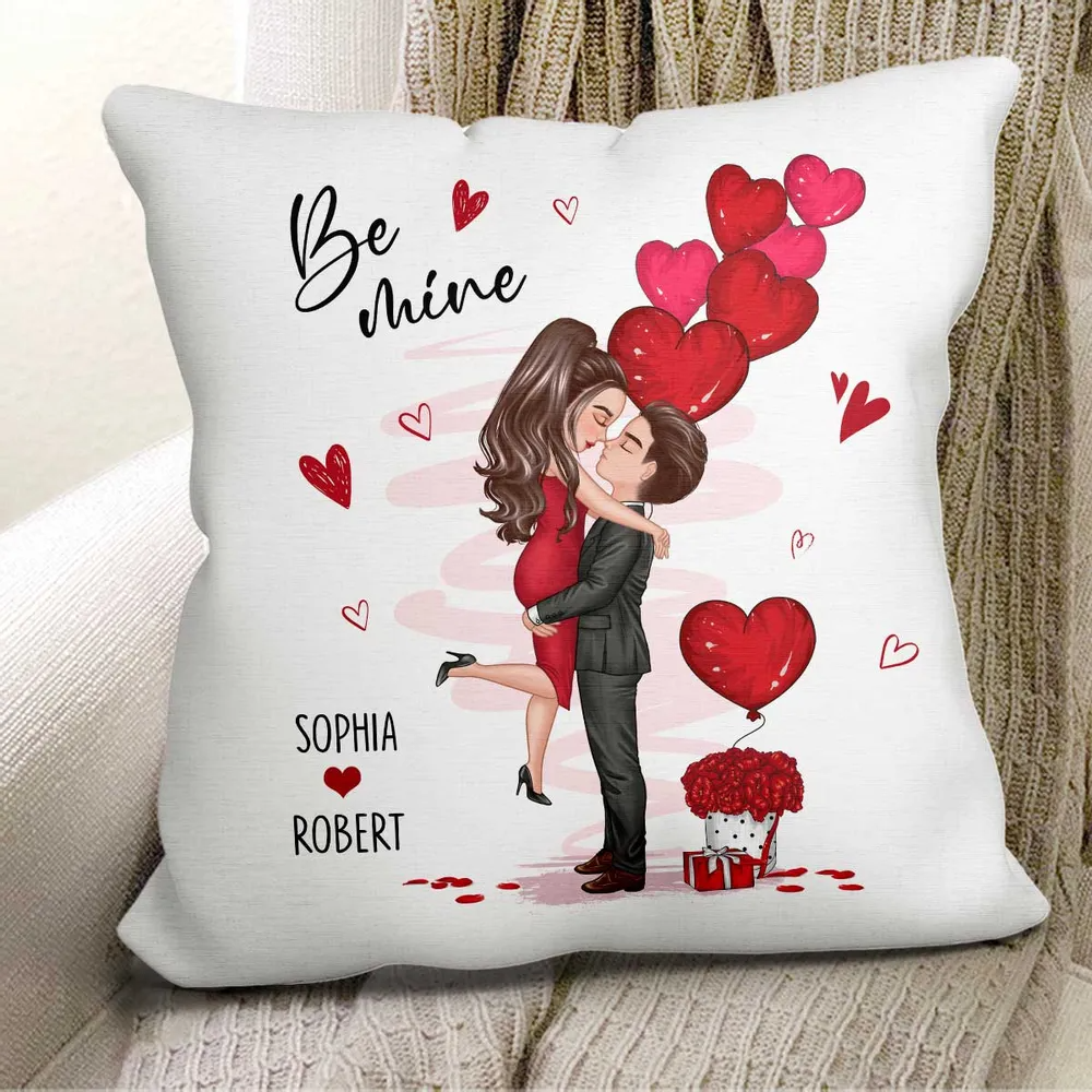 Be Mine Doll Couple Hugging Kissing Personalized Pillow - Gift For Him Gift For Her