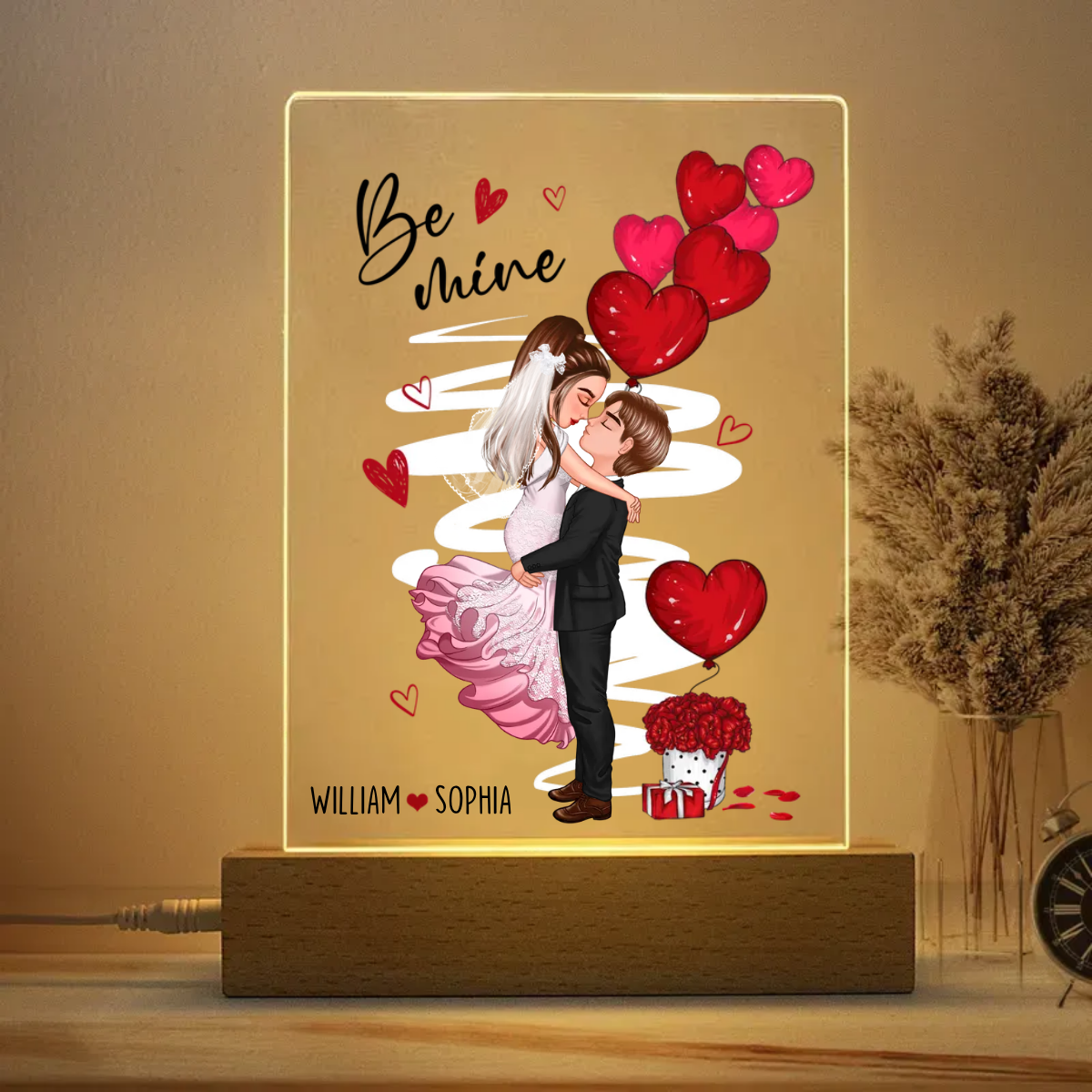 Be Mine Doll Couple Kissing - Gift For Couples - Personalized Plaque LED Night Light