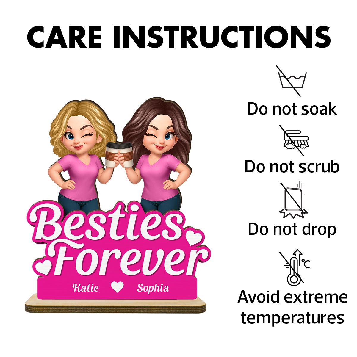 Beautiful Besties Pink Tone Personalized Flat 2-Layer Standing Wooden Plaque