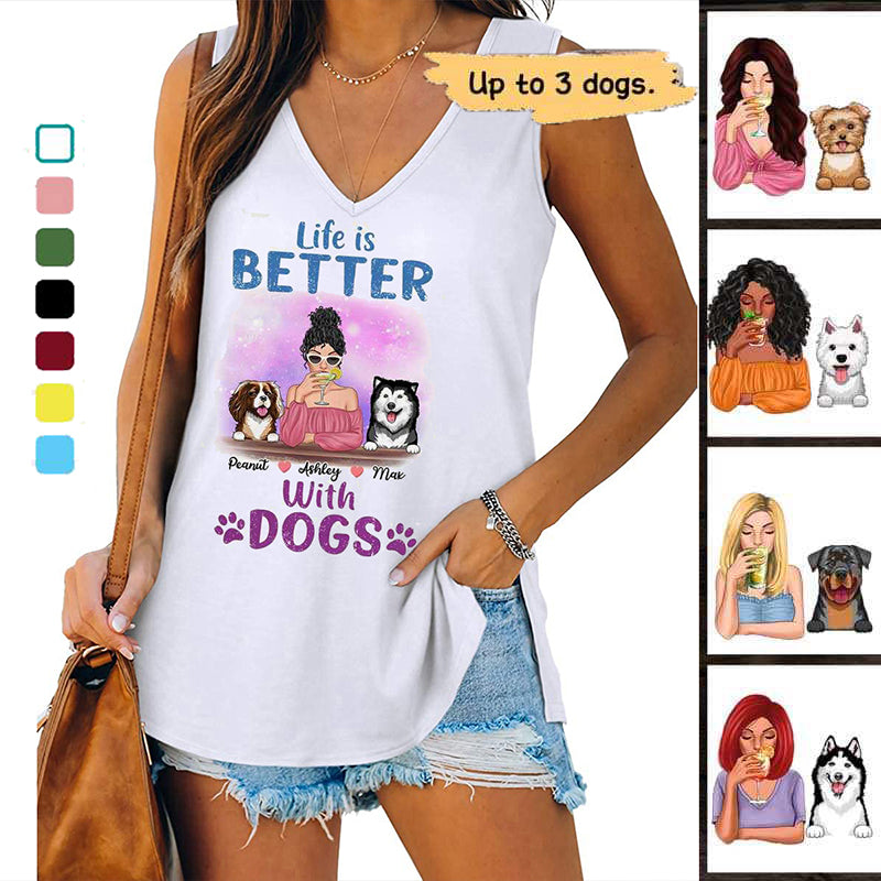 Beautiful Pattern Life Is Better With Dogs Personalized Women Tank Top V Neck Casual Flowy Sleeveless