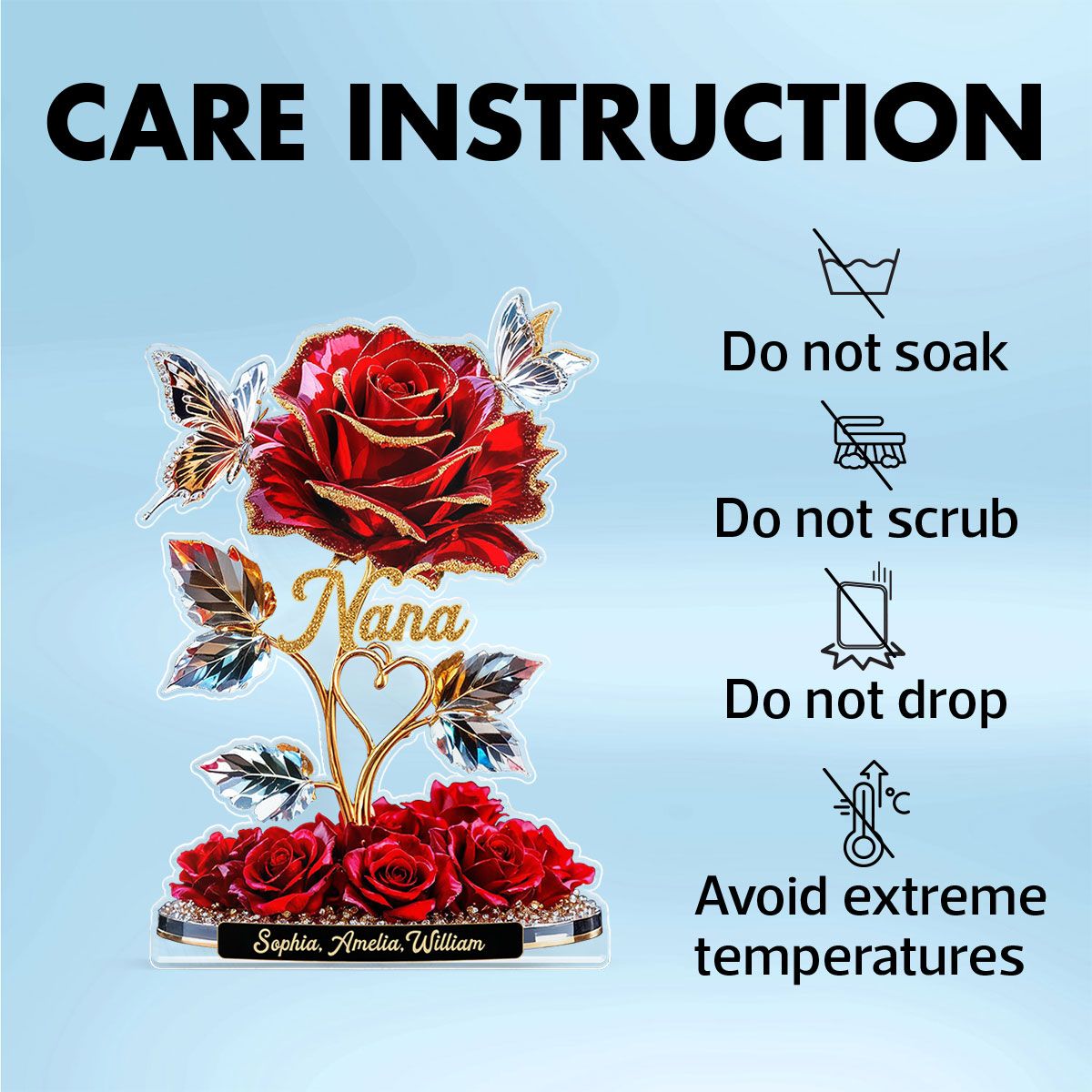 Beautiful Rose For Grandma Mom With Kids Names 3D Effect Personalized Flat Acrylic Block Plaque