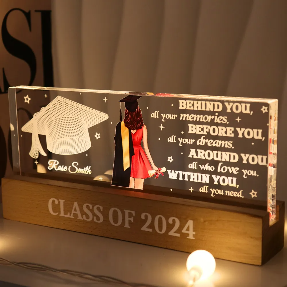 Behind You All Your Memories Graduation Gift Personalized Acrylic Block LED Night Light