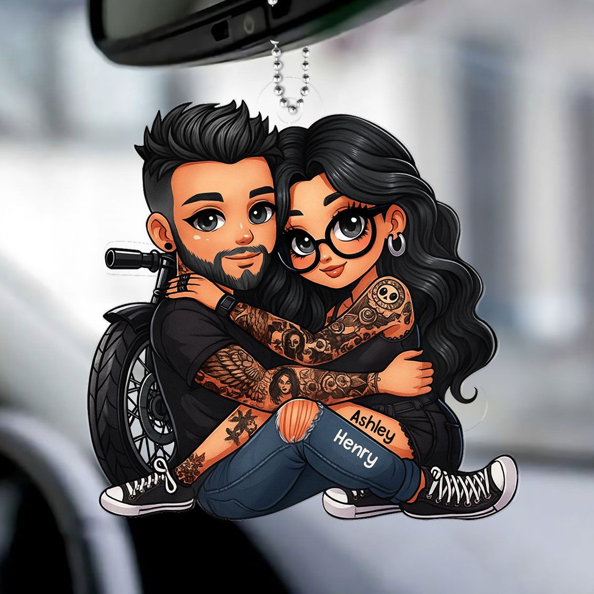 Biker 3D Cartoon Effect Couple Personalized Acrylic Car Ornament, Gift for her, Gift for him, Motorcycle Lovers