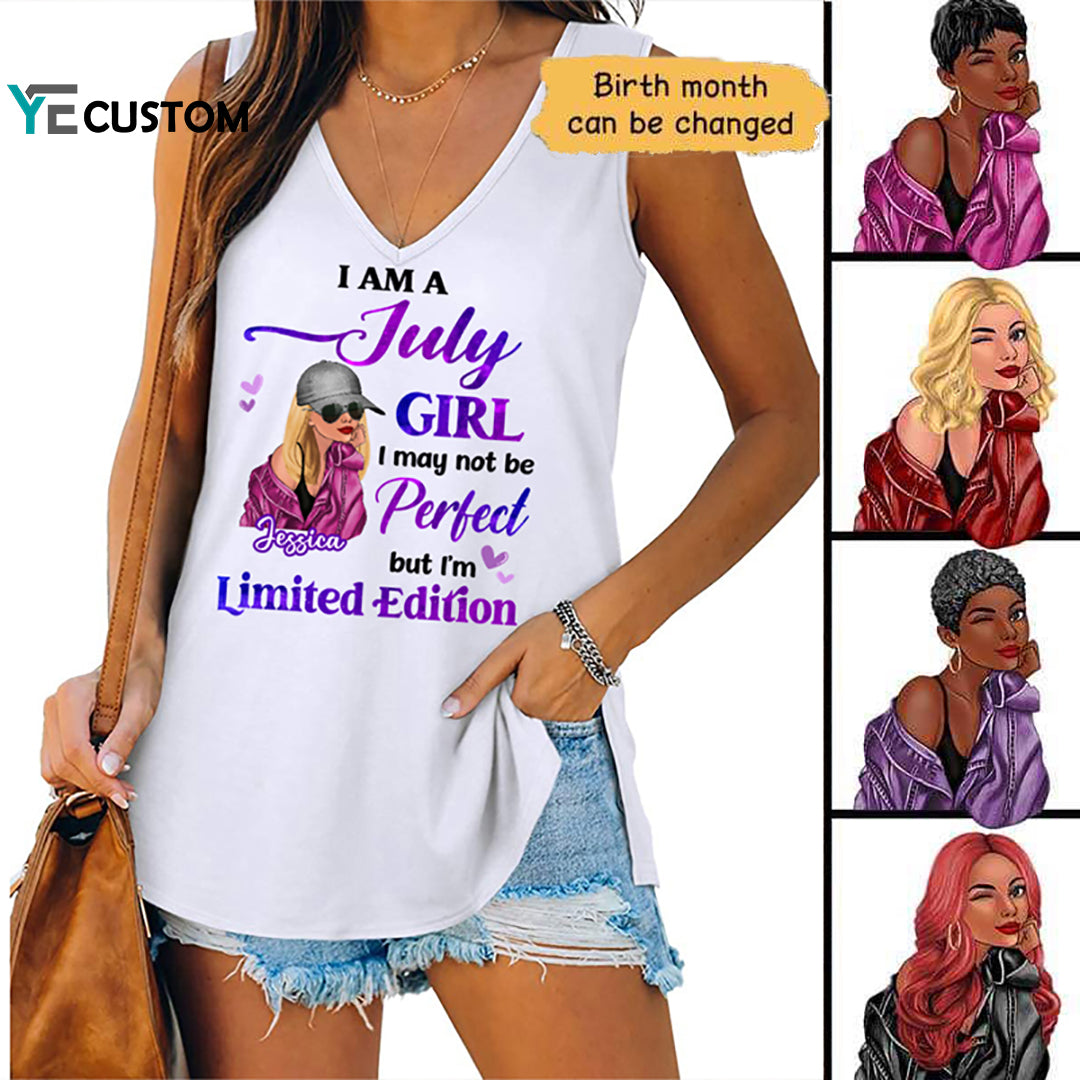 Birthday Gift Birth Month Fashion Girl Limited Edition Personalized Women Tank Top V Neck Casual Flowy Sleeveless