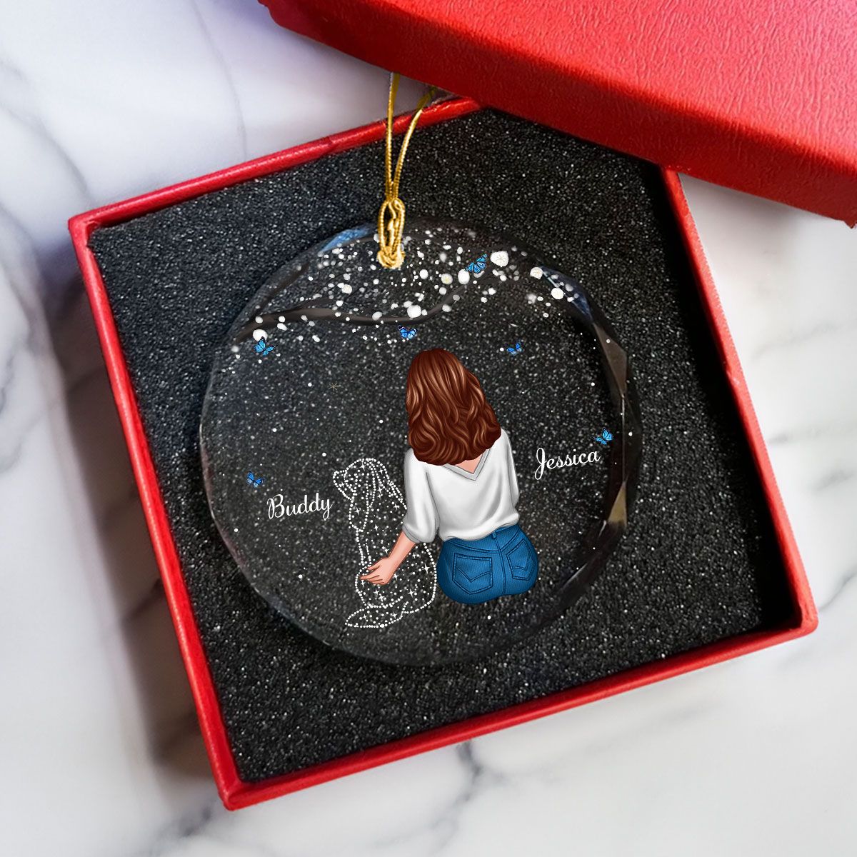 Add a touch of love and elegance to your holiday celebrations with this one-of-a-kind glass ornament. Order now to create new traditions and unforgettable moments!