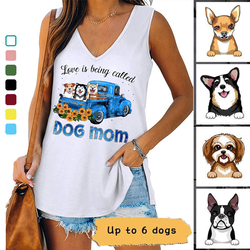 Blue Car Love Being Called Dog Mom Personalized Women Tank Top