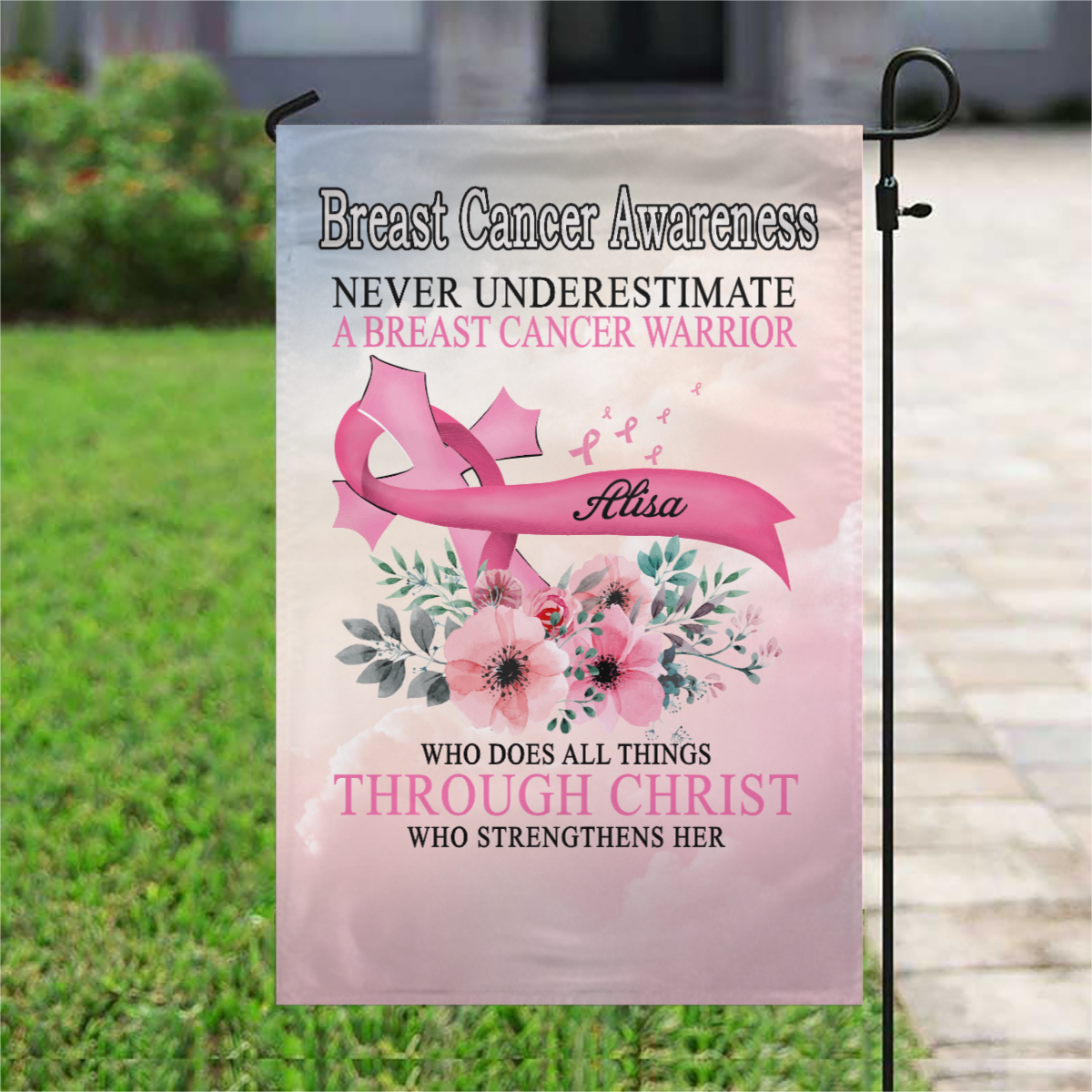 Breast Cancer Warrior Does All Things Personalized Name Garden Flag