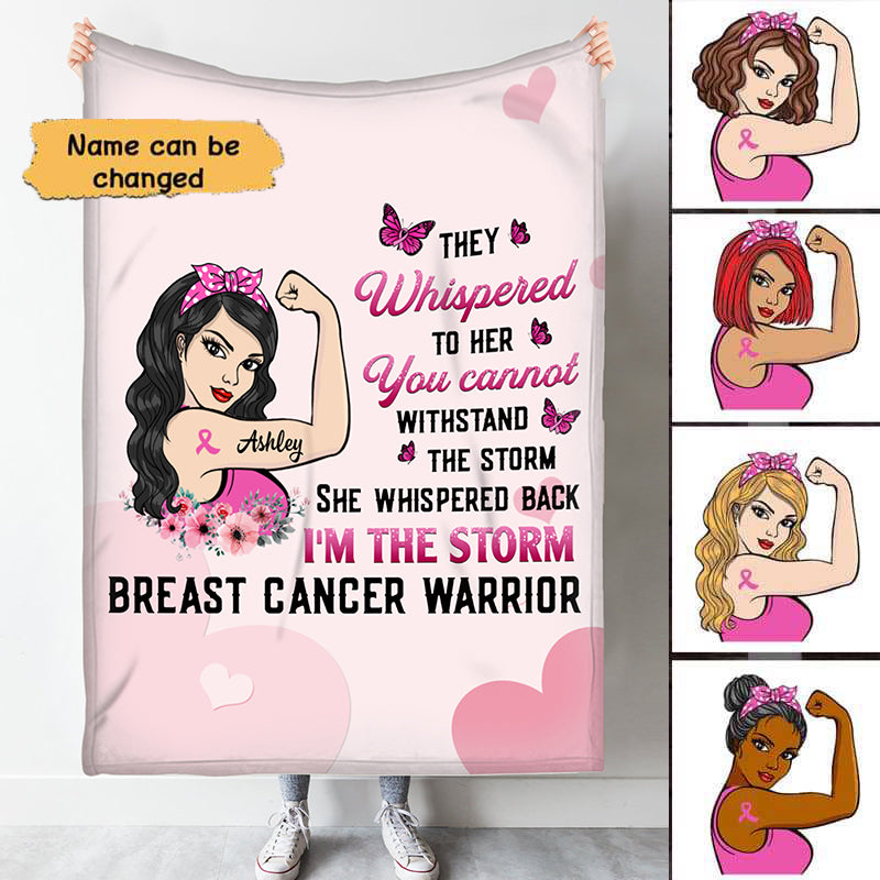 Breast Cancer Warrior The Storm Strong Woman Personalized Fleece Blanket