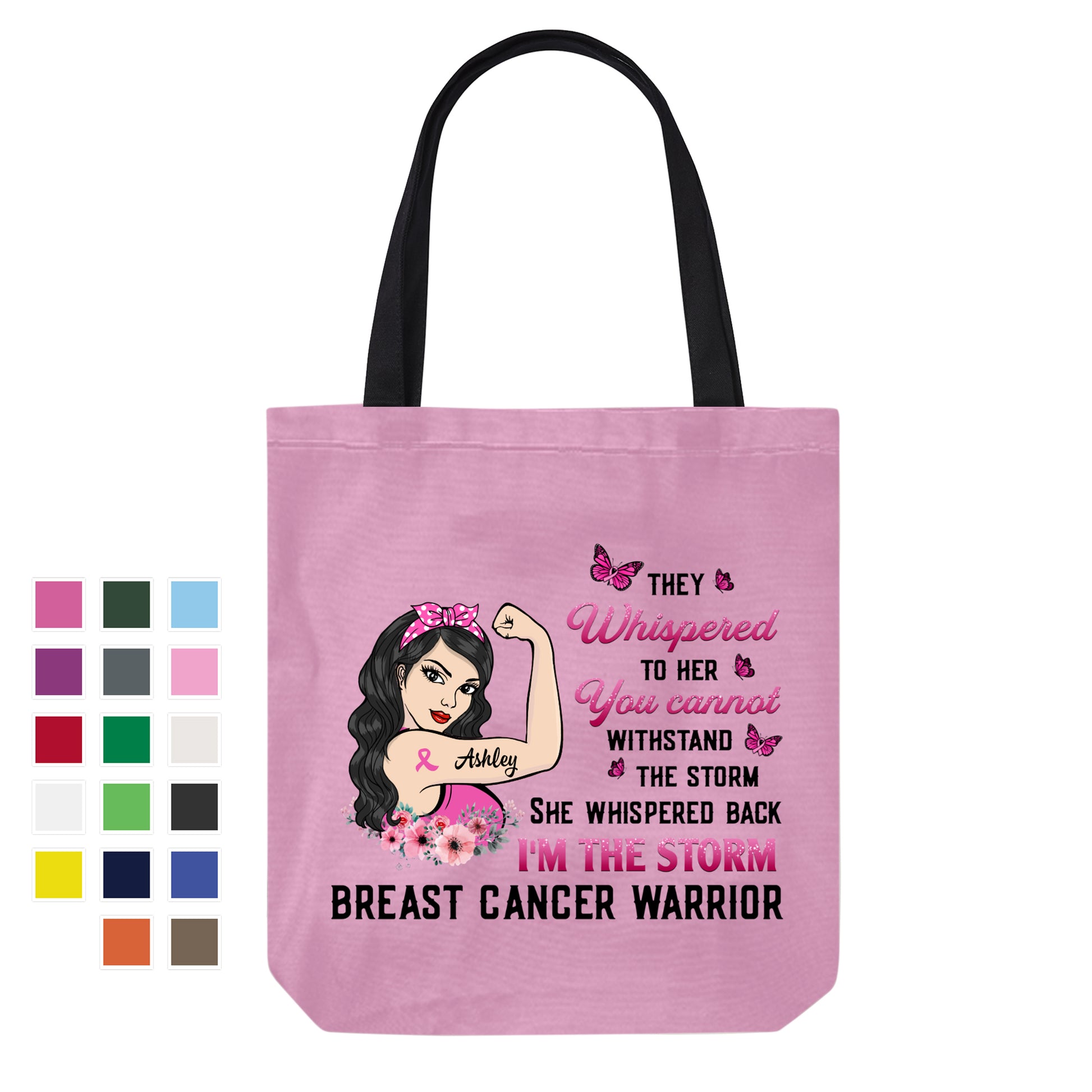 Breast Cancer Warrior The Storm Strong Woman Personalized Canvas Bag