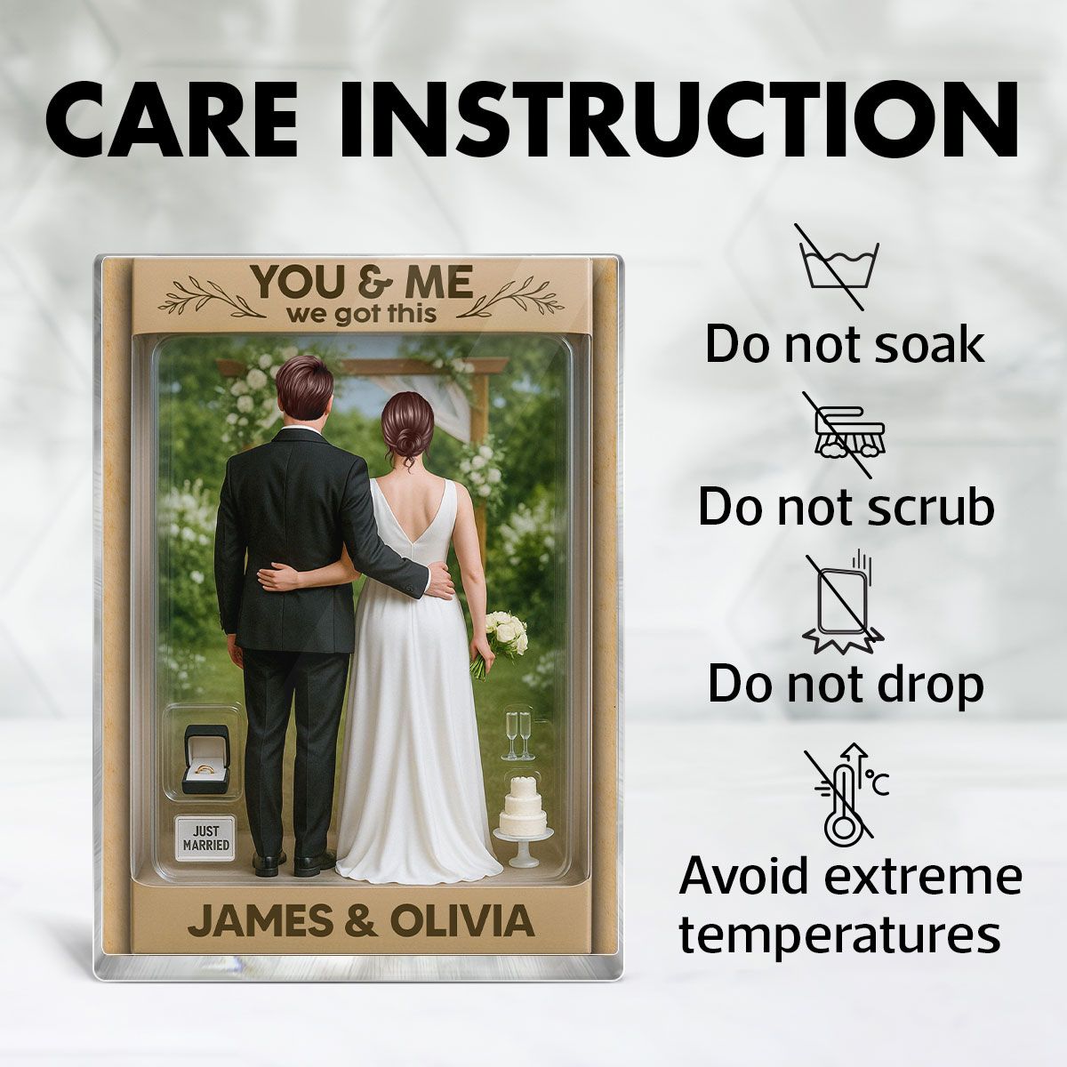Bride & Groom Couple Toy Box Figures Style Garden Wedding Theme Personalized Acrylic Block Plaque, Wedding Gift, Newlyweds Gift