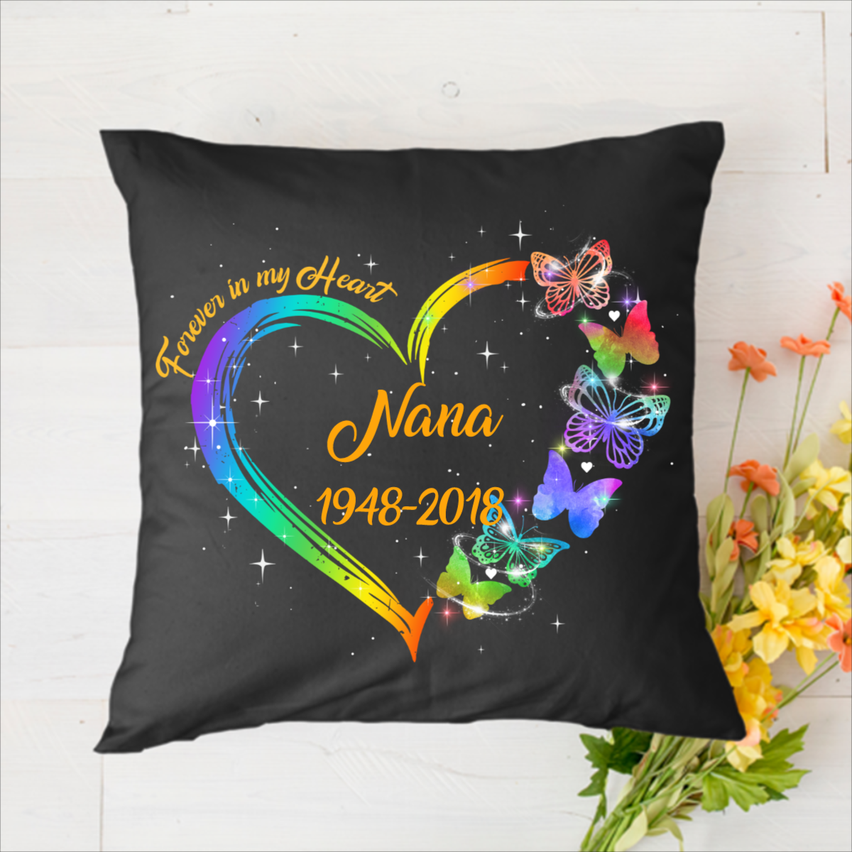 Butterflies Heart Memorial Personalized Name & Date Polyester Linen Pillow
