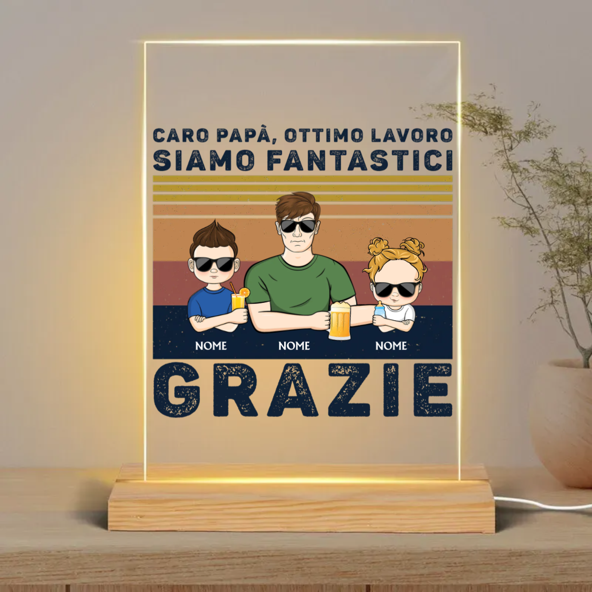 Caro Papà Ottimo Lavoro Siamo Fantastici Grazie Giovane - Regalo per il Padre - Placca acrilica rettangolare personalizzata Luce notturna a LED