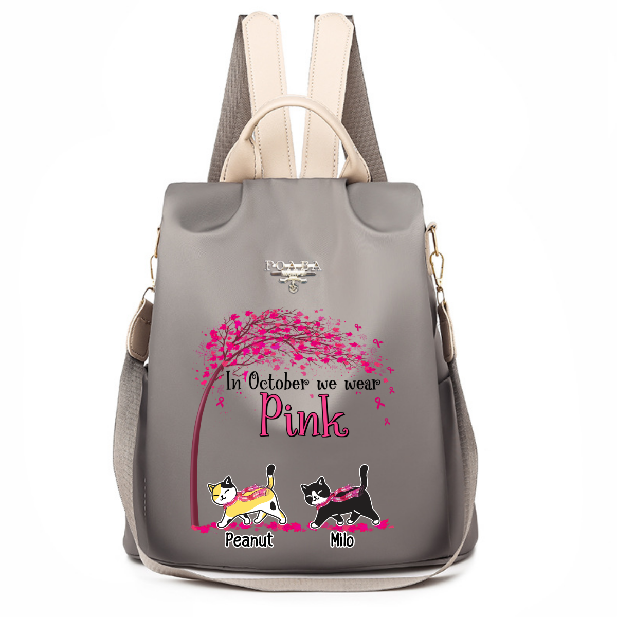 Cat Breast Cancer In October We Wear Pink Personalized Cat Backpack