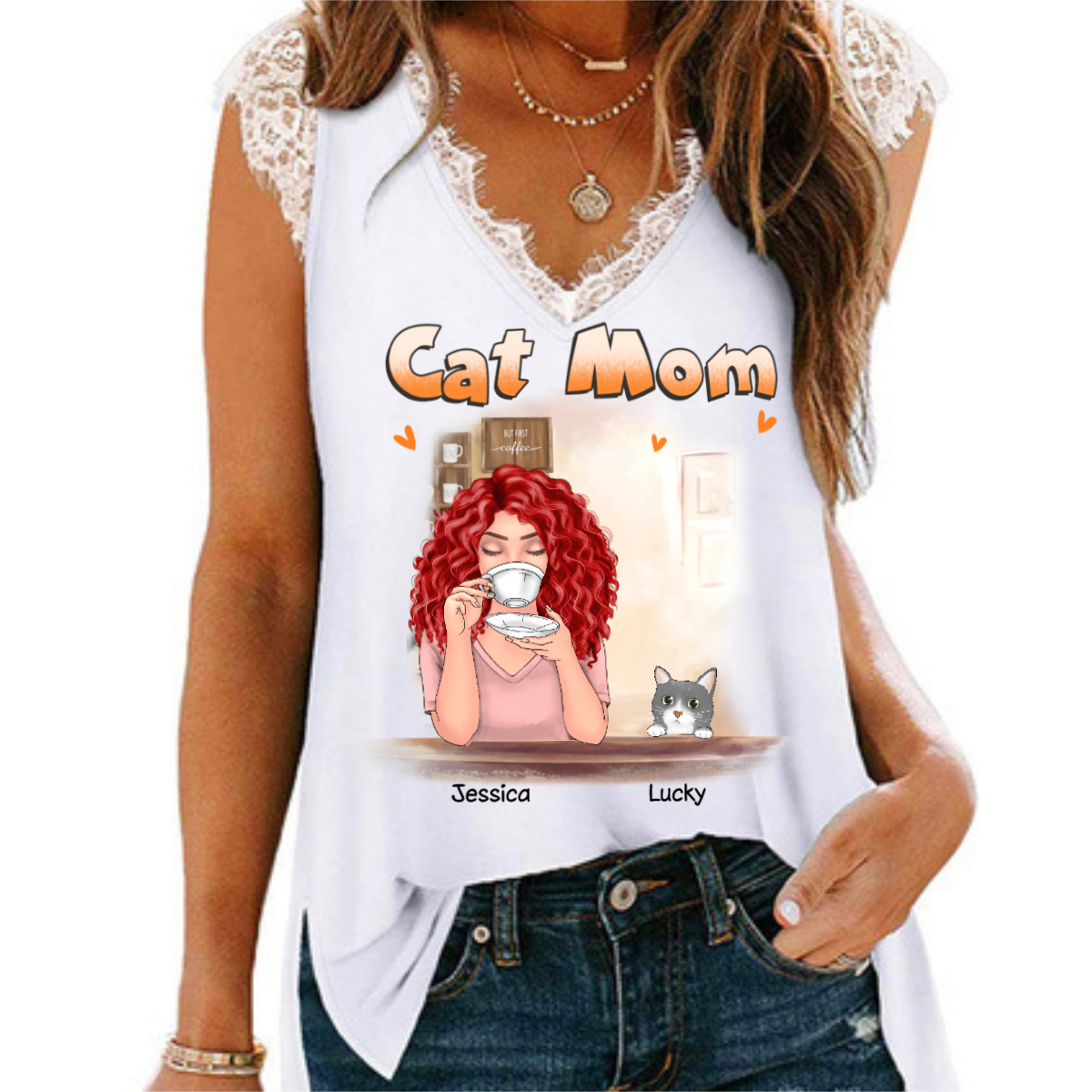 Cat Mama Personalized Women Tank Top V Neck Lace