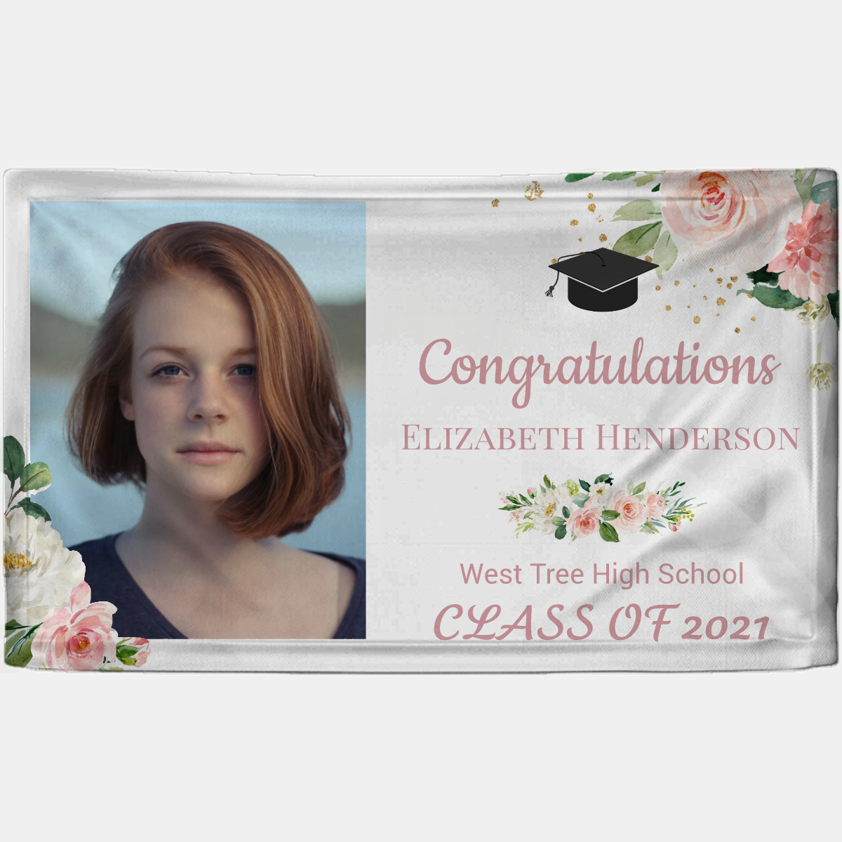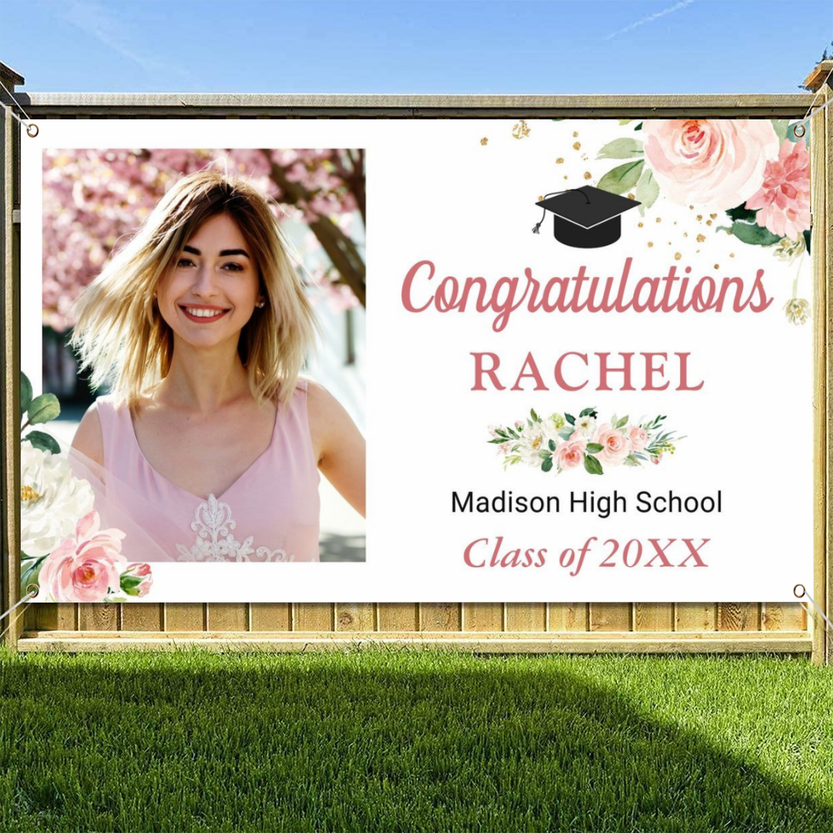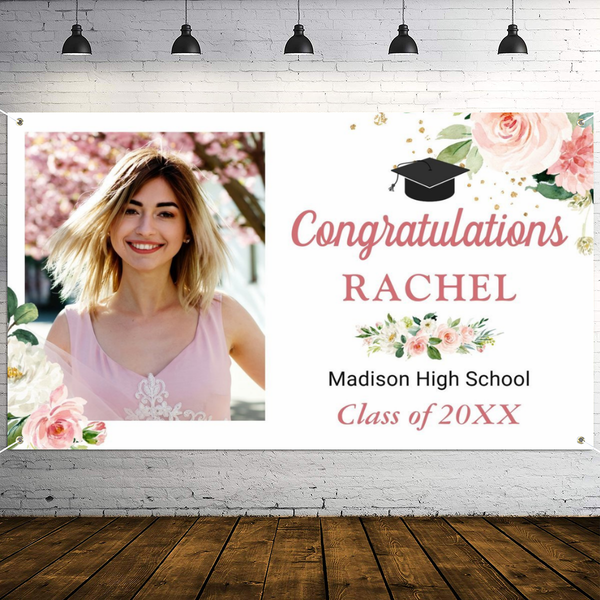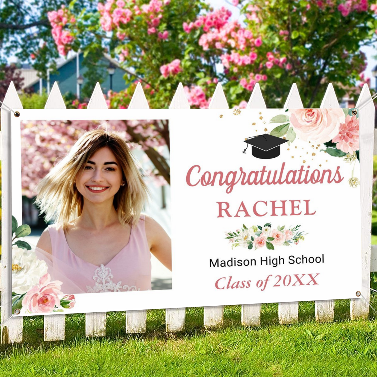 2022 Personalized Name/Photo, Classy Blush Pink Floral Graduate Graduation Party Banner