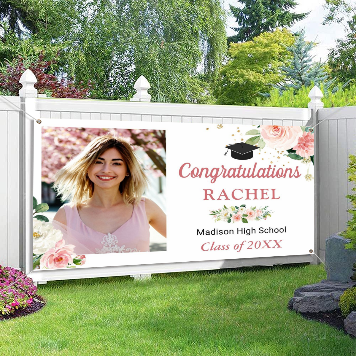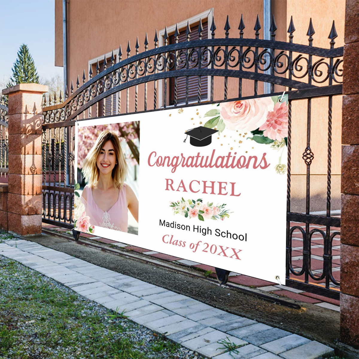 - Graduation Banner 2021 graduation decorations. Extra large sized backdrop. Congrats Grad sign creates a fun event atmosphere for friends and family.