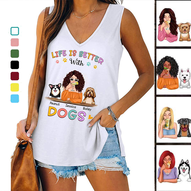 Colorful Better With Dogs Cocktail Girl Personalized Women Tank Top V Neck Casual Flowy Sleeveless