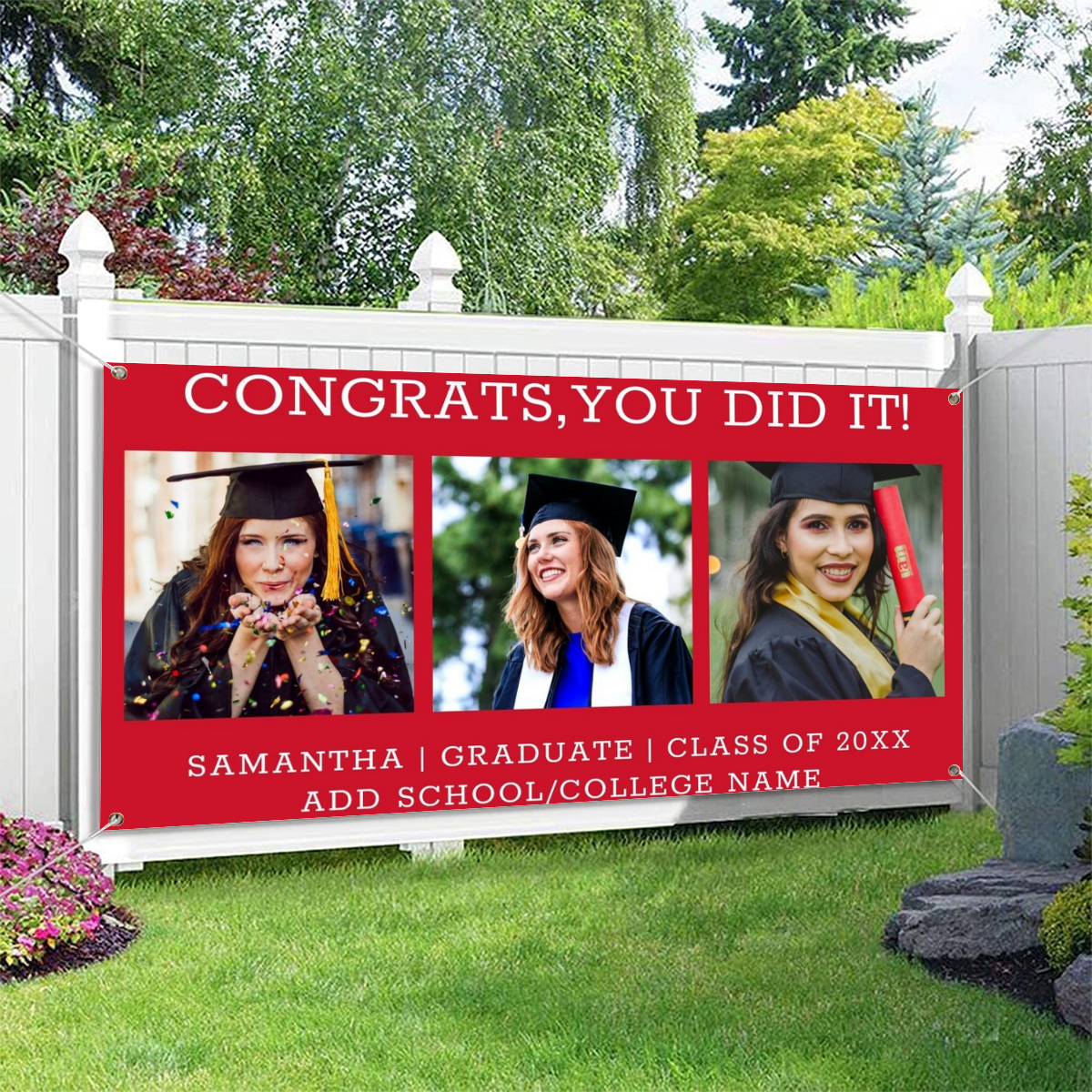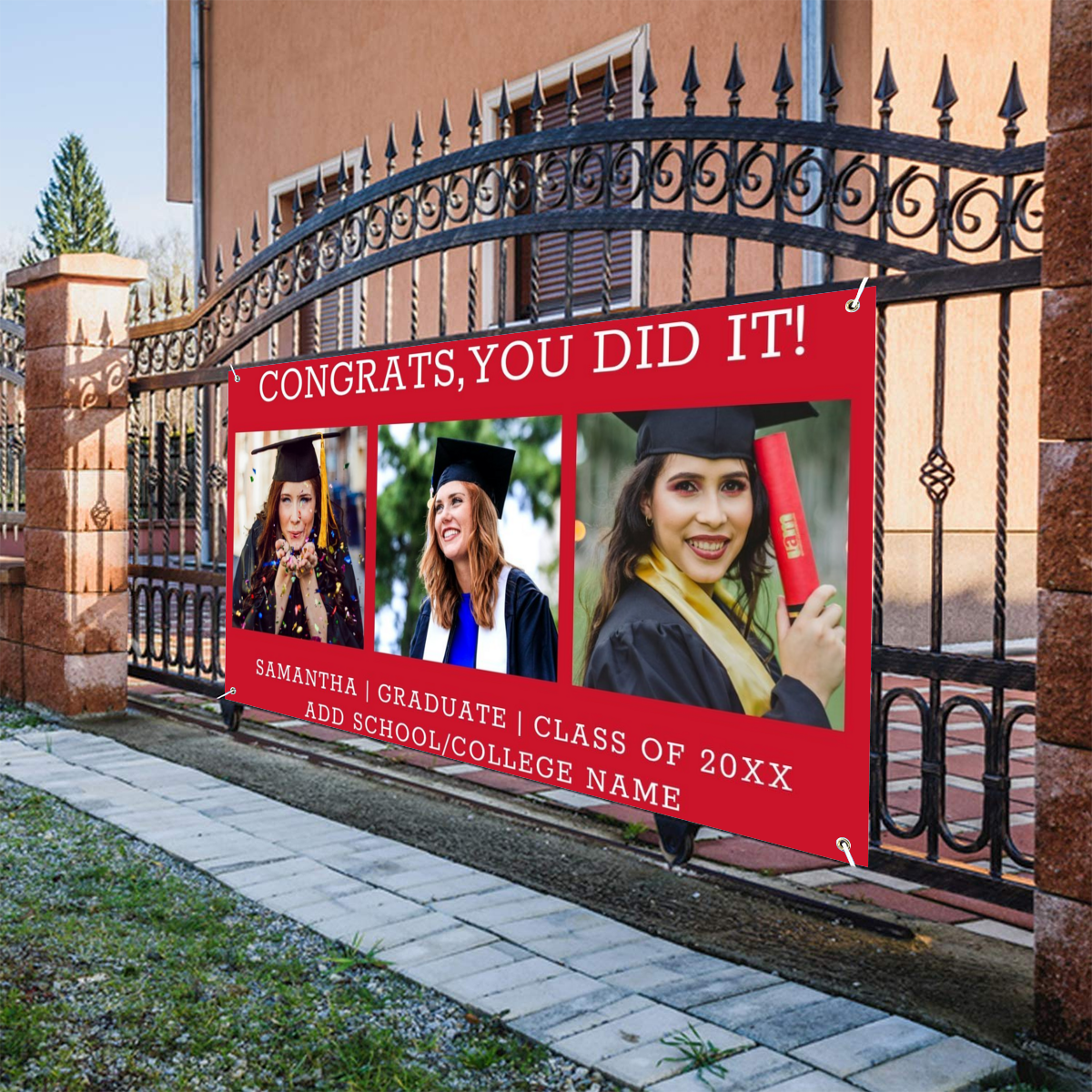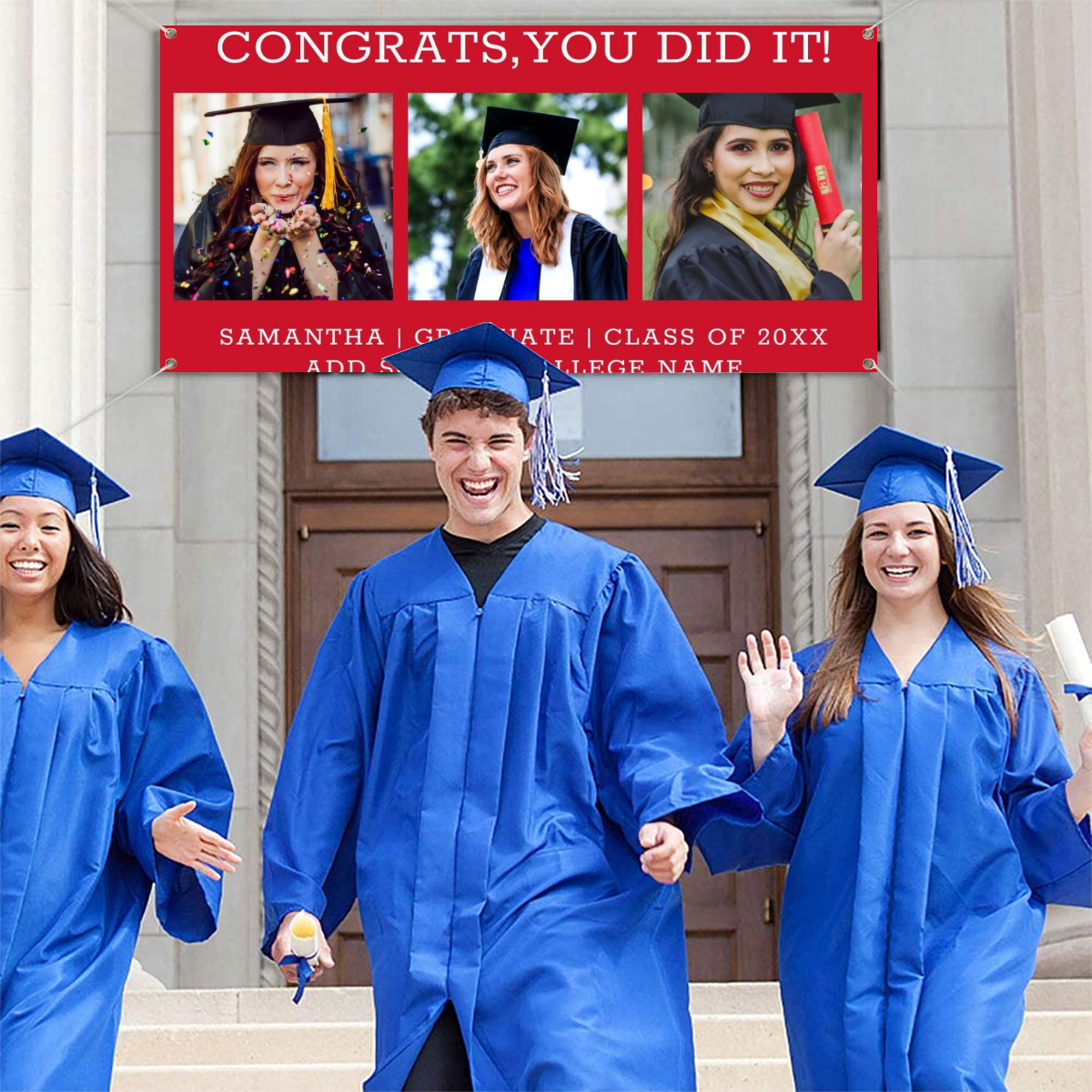 - Graduation Banner 2021 graduation decorations. Extra large sized backdrop. Congrats Grad sign creates a fun event atmosphere for friends and family.