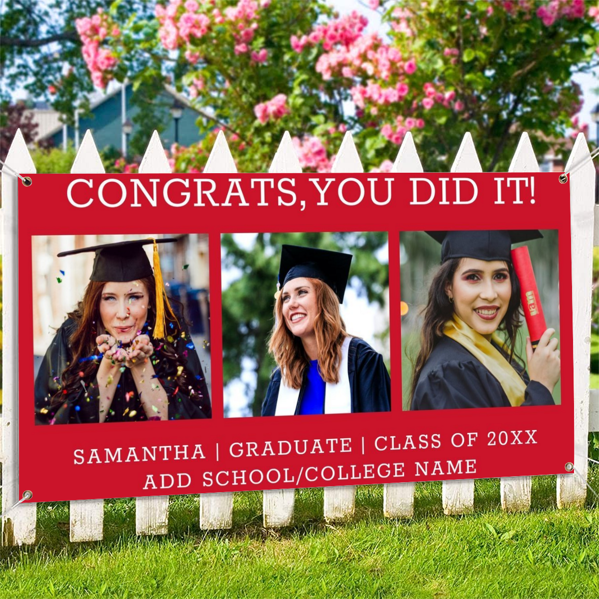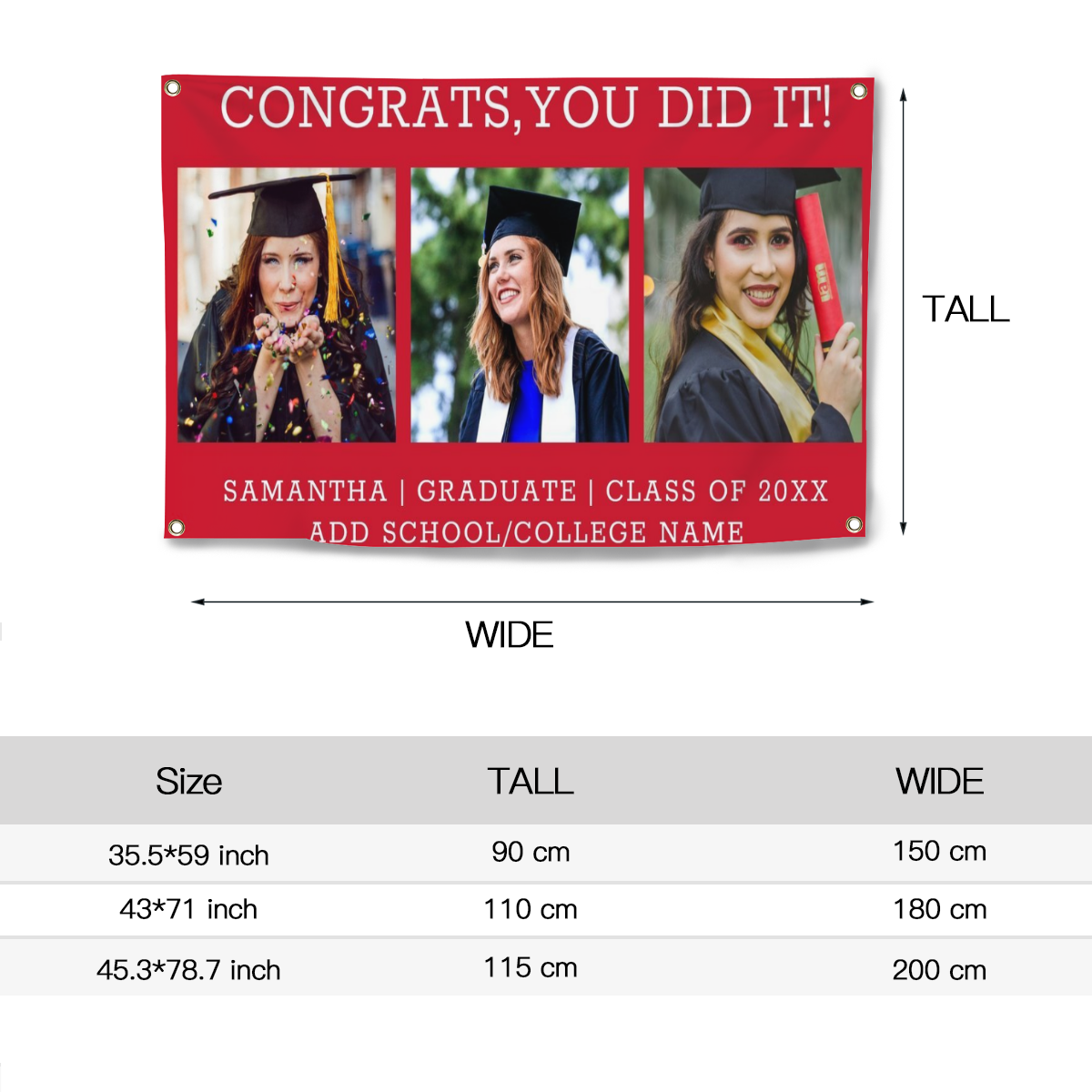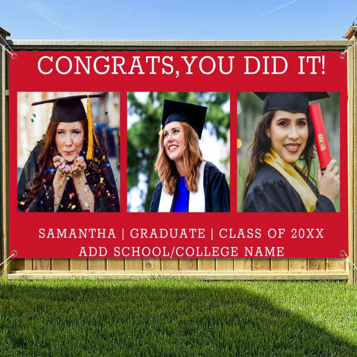 - Graduation Banner 2021 graduation decorations. Extra large sized backdrop. Congrats Grad sign creates a fun event atmosphere for friends and family.