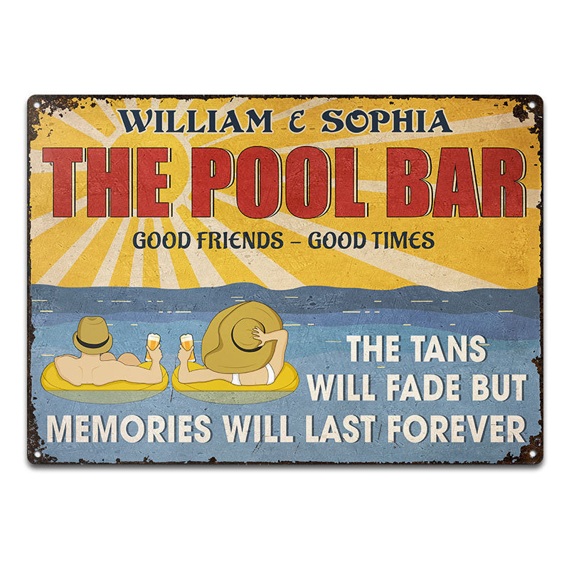 Couple Beach Bar Memories Will Last Forever - Personalized Custom Classic Metal Signs