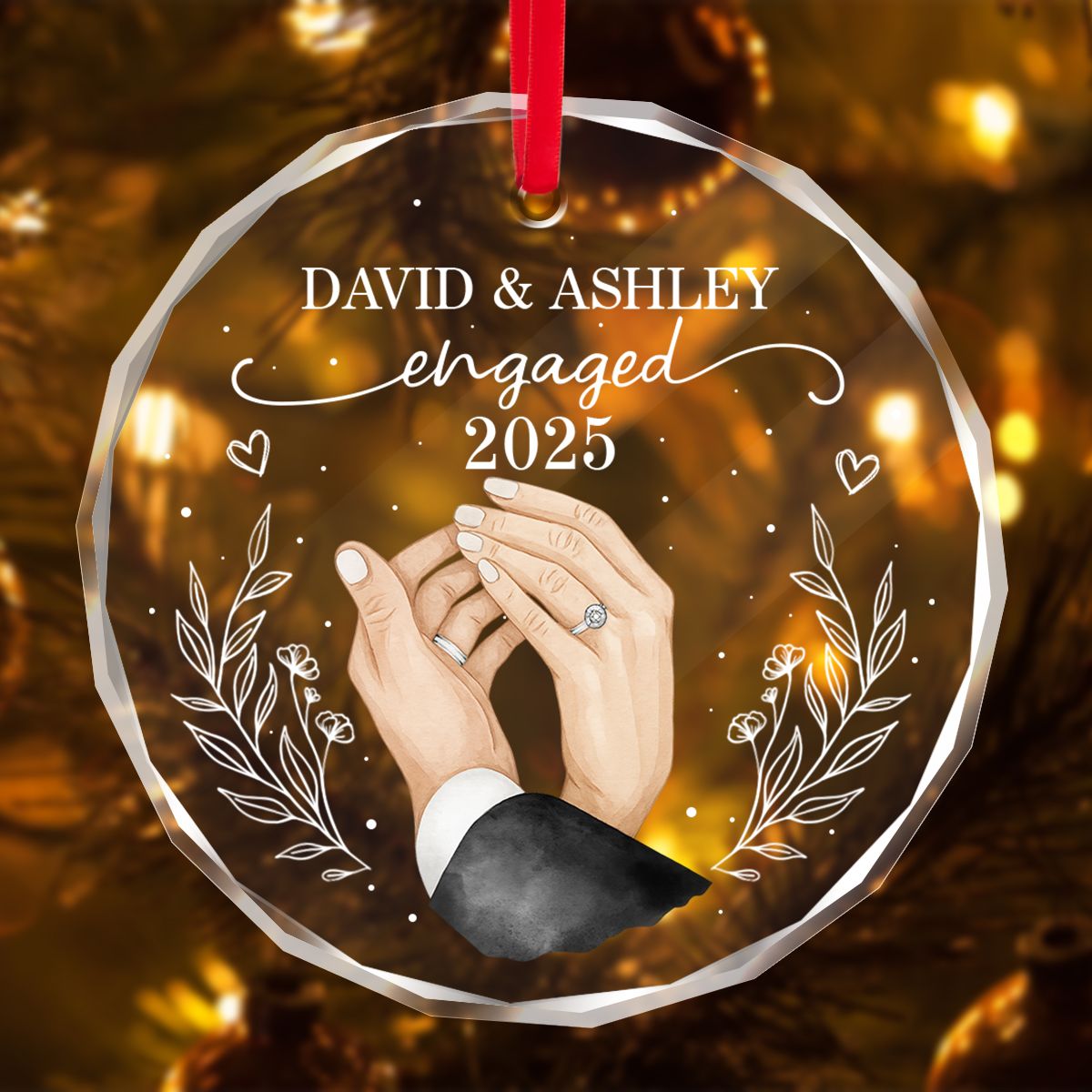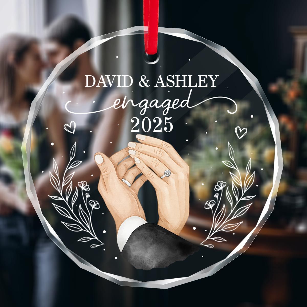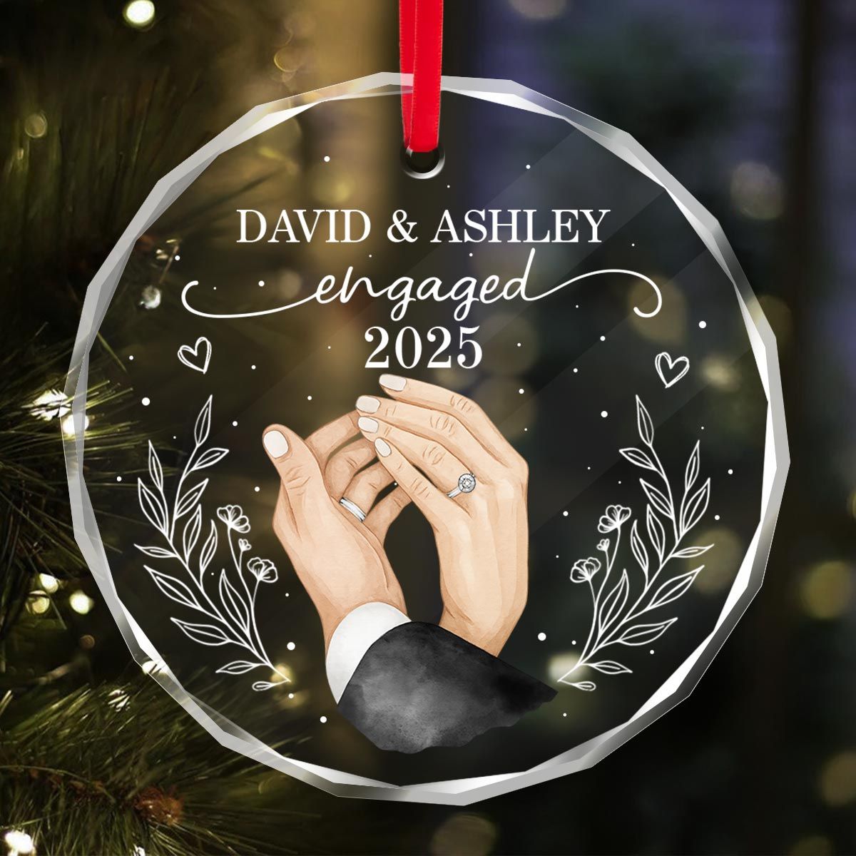 Couple Hands Forever Love First Christmas Engaged Personalized Glass Ornament, Gift For Newly Engaged Couple