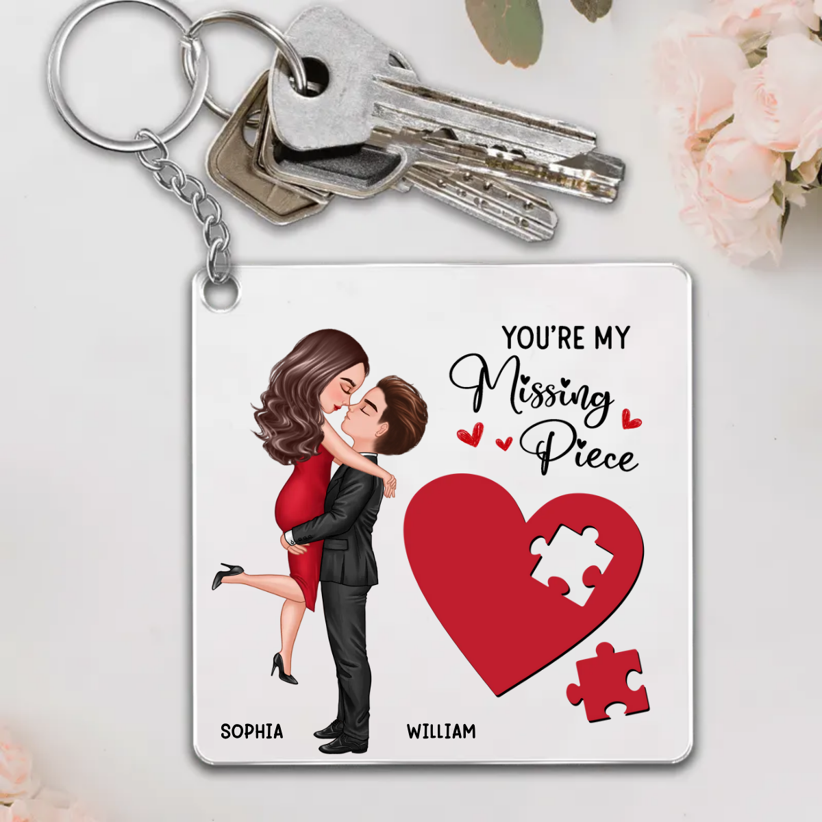 Couple Missing Piece Red Heart Valentine‘s Day Gift For Her Gift For Him Personalized Acrylic Keychain