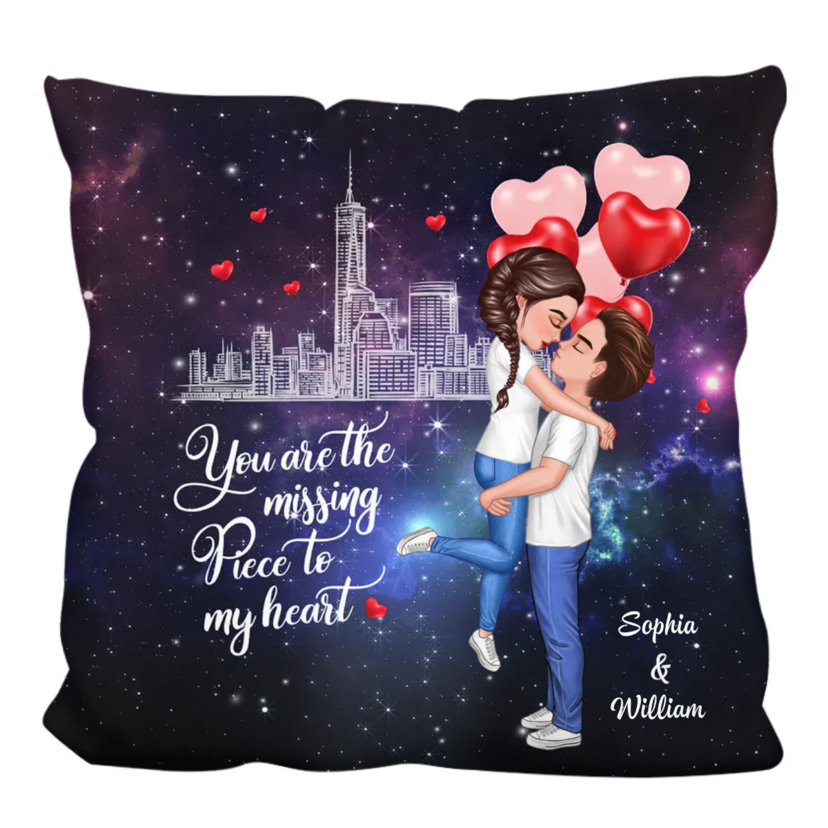 Couple of Missing Piece Galaxy Background Personalized Polyester Linen Pillow