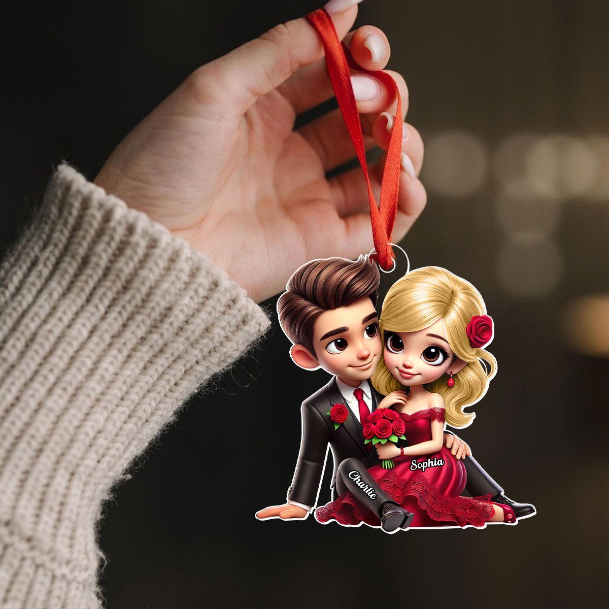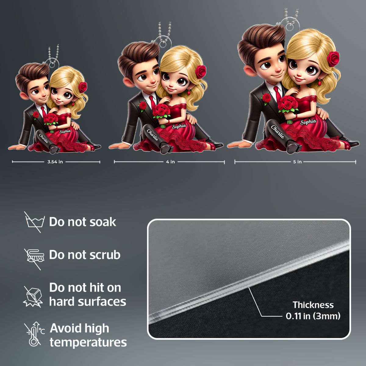 Couple Roses Sitting Together Personalized Acrylic Car Hanger, Anniversary Valentine's Day Gift for him, Gift for her