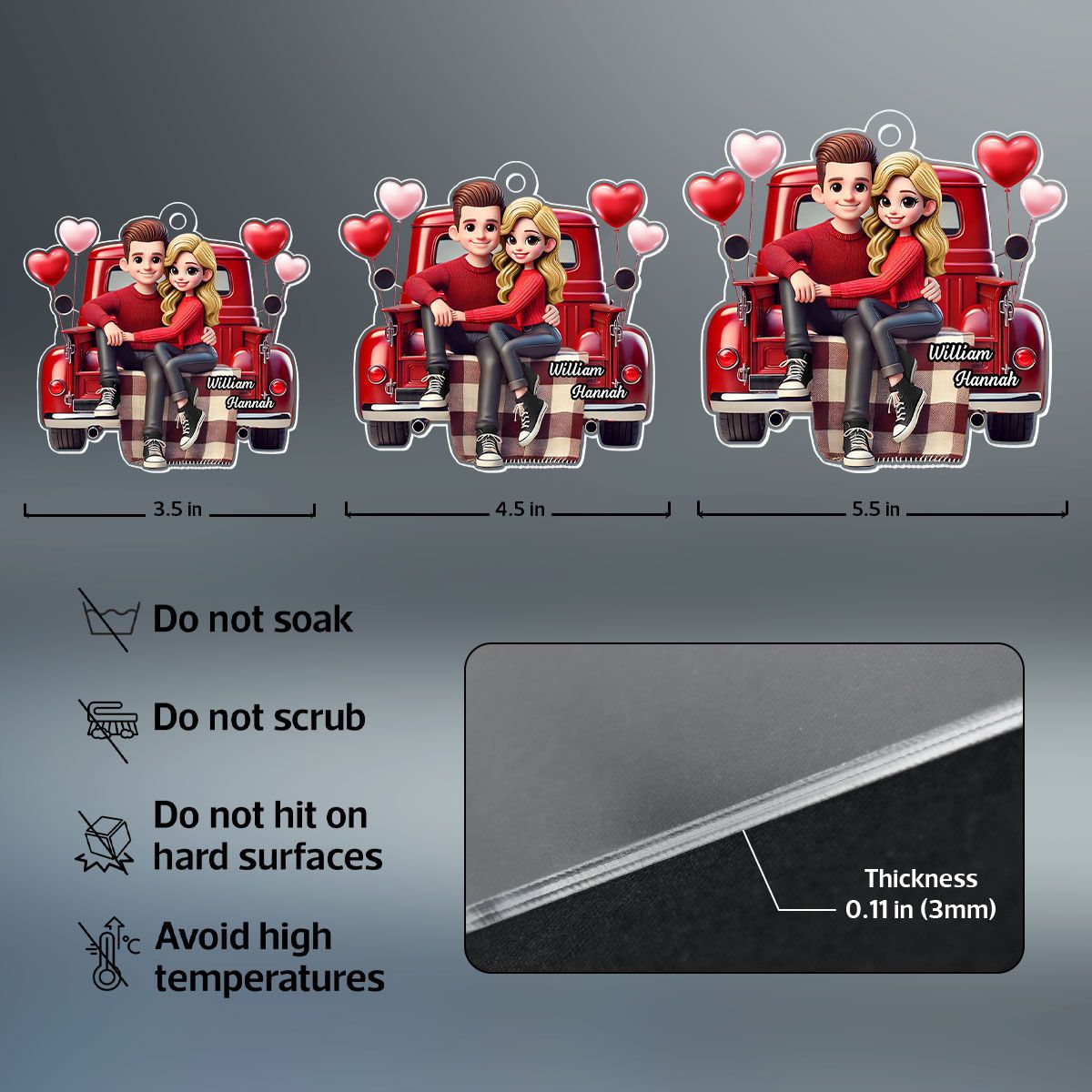 Couple Sitting On Red Truck Personalized Acrylic Car Hanger, Valentine's Day Gift, Anniversary Gift For Couples