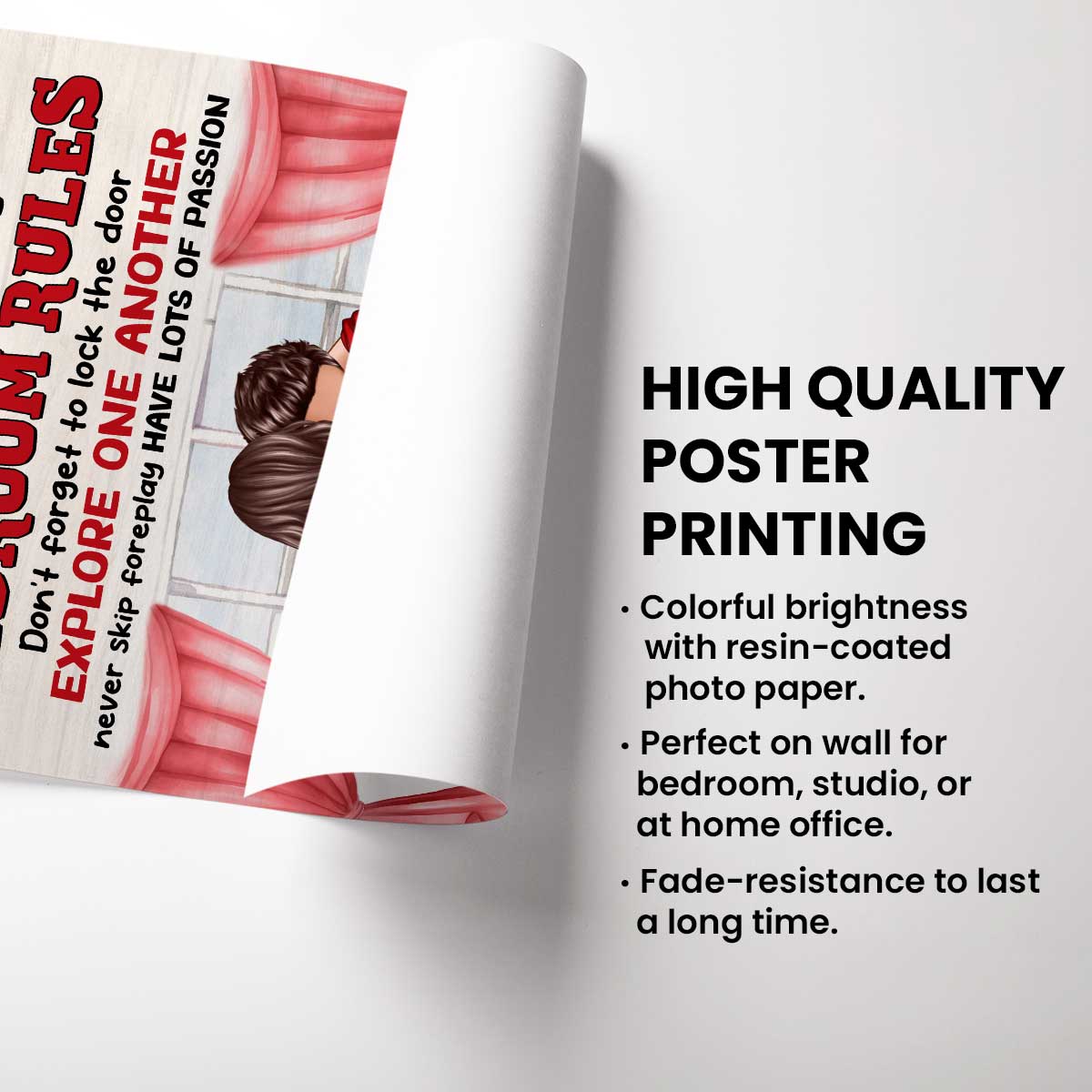 Couple Standing Kissing Bedroom Rules Personalized Vertical Poster
