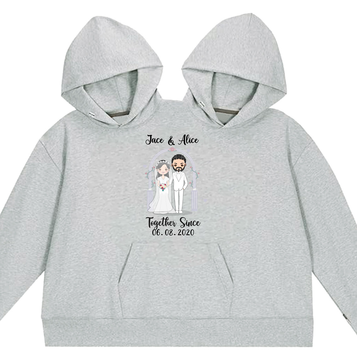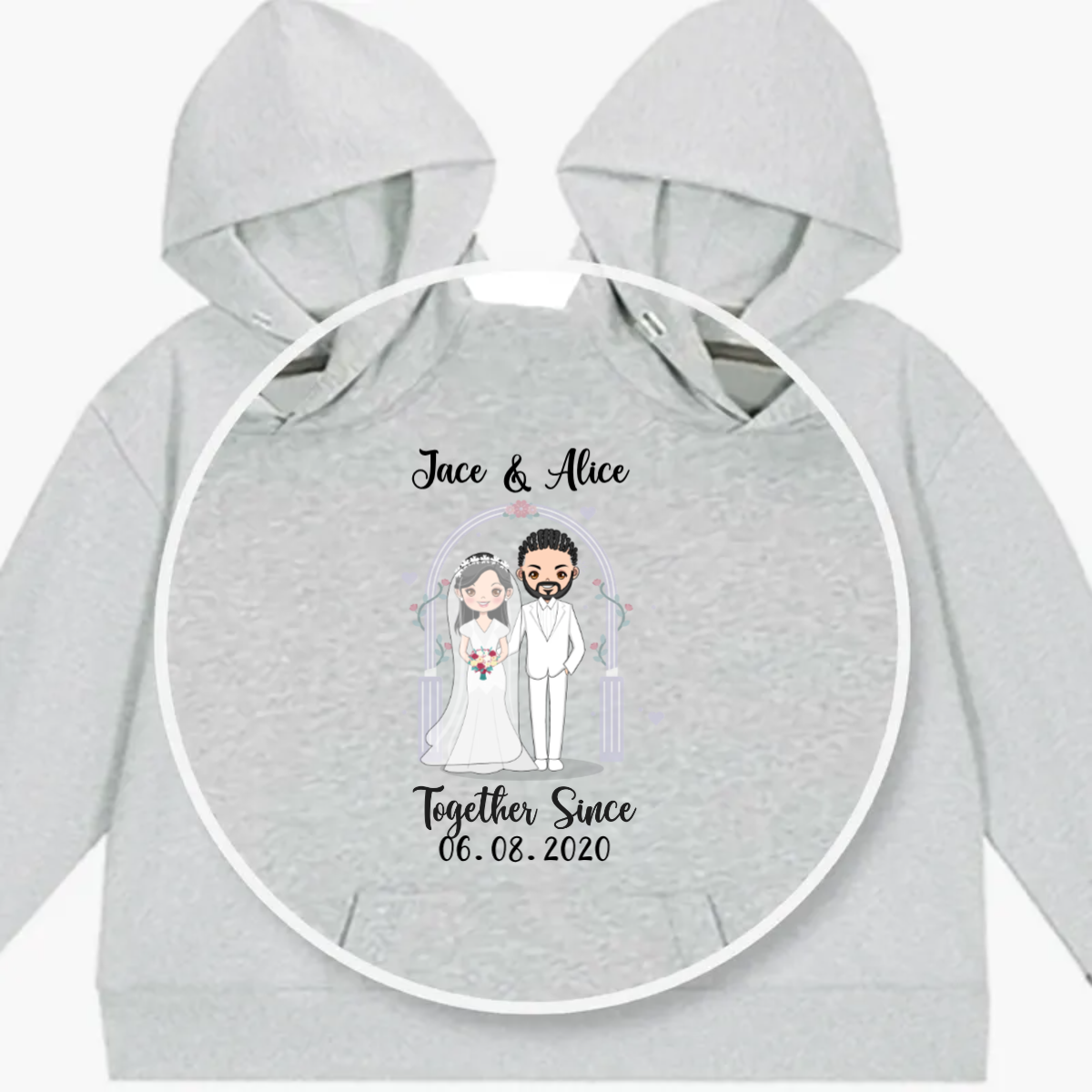 Couple Together Since Wedding Chibi Honeymoon Anniversary Personalized Couple One-Piece Hoodie Sweatshirt